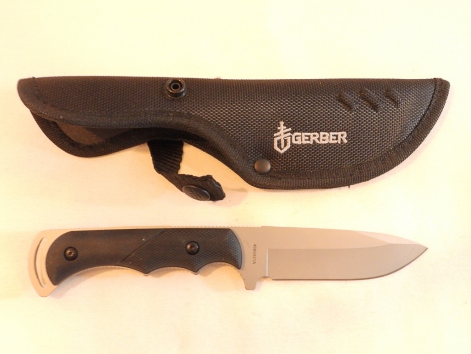 4660321A Gerber fixed blade 8 1/2″ total length, sheath in great shape