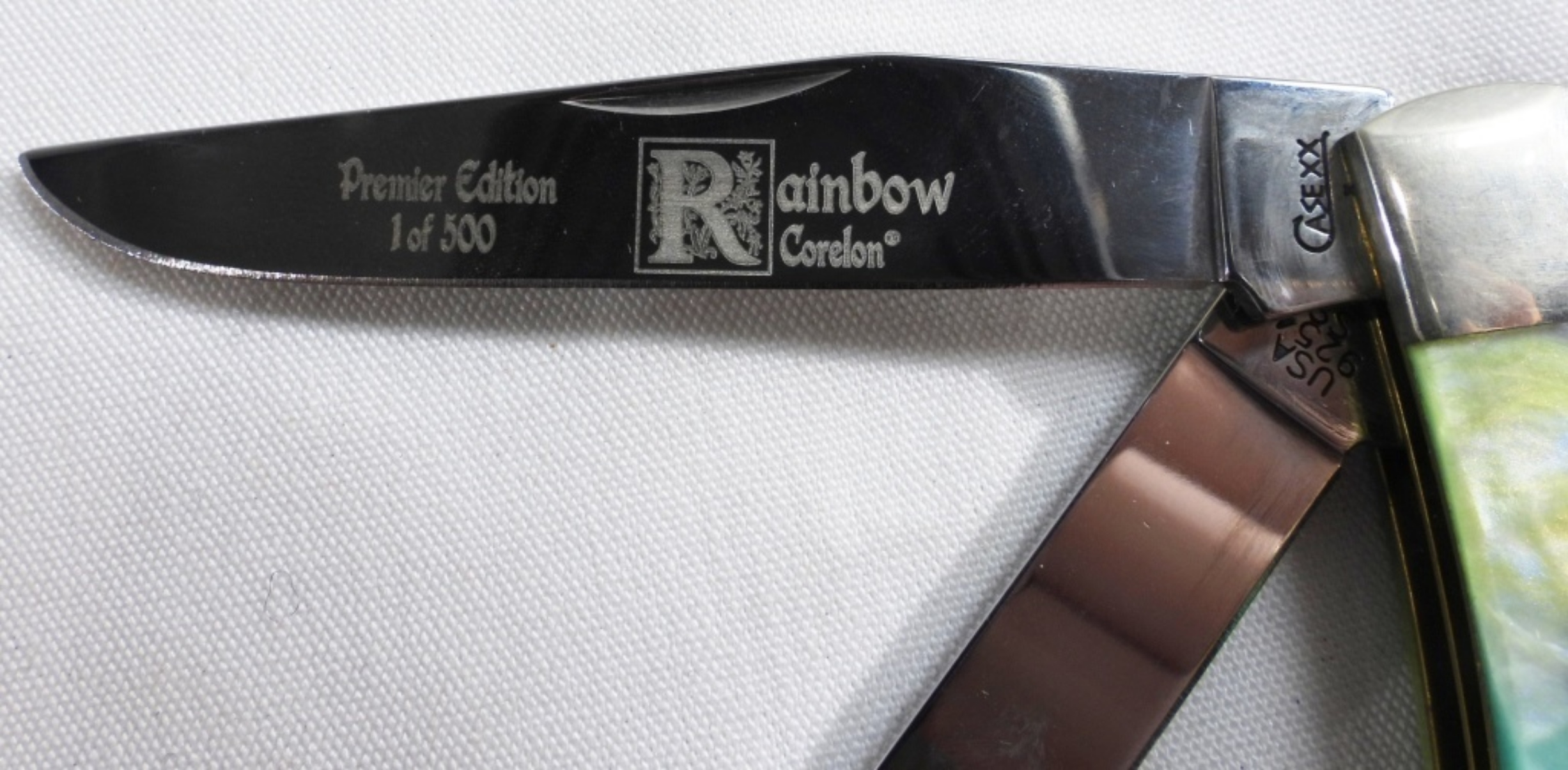 1 of 500 #9254 SS engraved genuine rainbow corleone two-blade. New in box