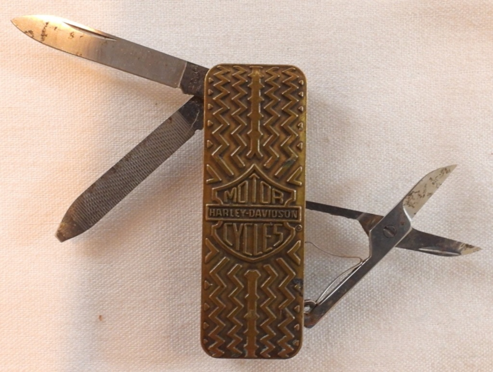 vintage Harley Davidson money clip knife/multi tool, 2 1/4″ long