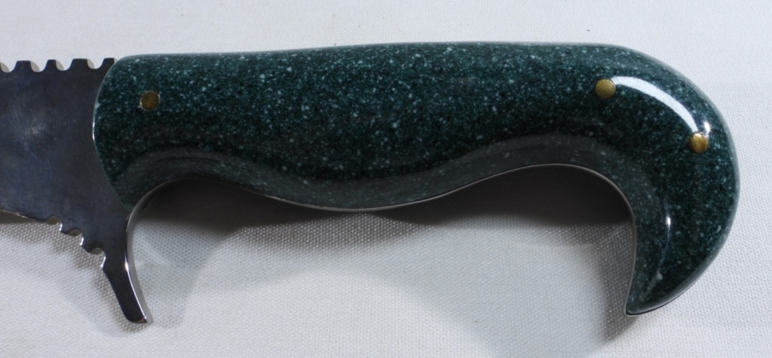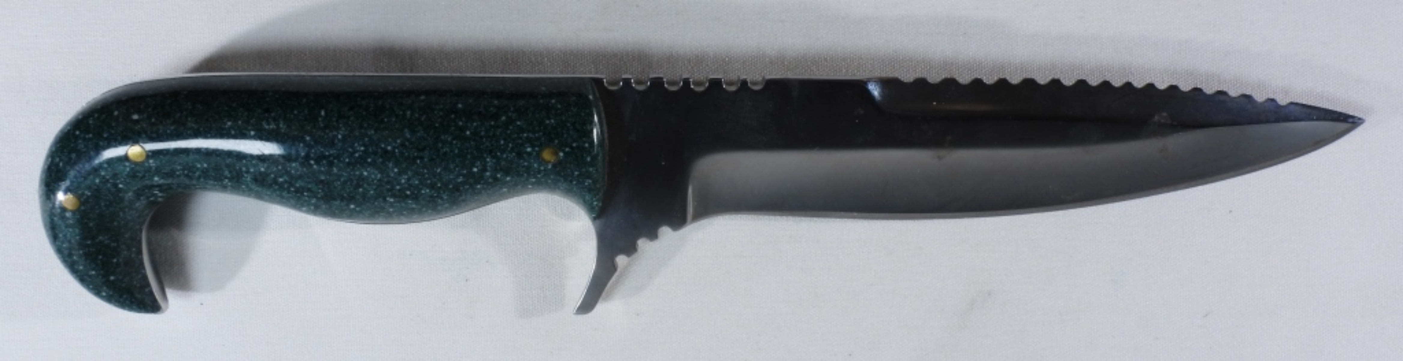 10.5 inches in length with a green and white curved handle