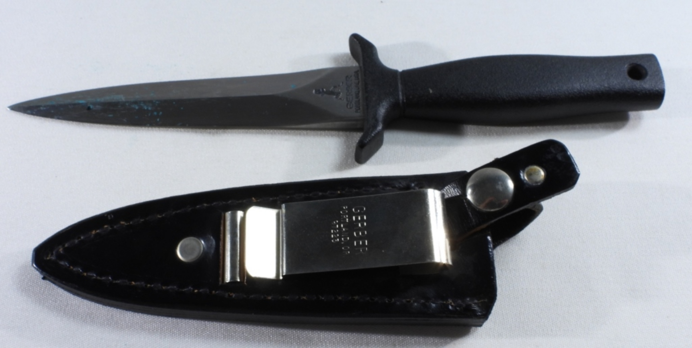 Dagger Boot Knife With black leather sheath and belt clip Portland Ore U.S.A