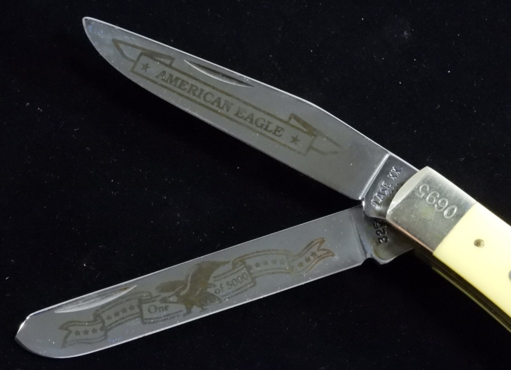 Number 3254.Two blade Yellow handle. American Eagle on one blade and one of 5000 on the other