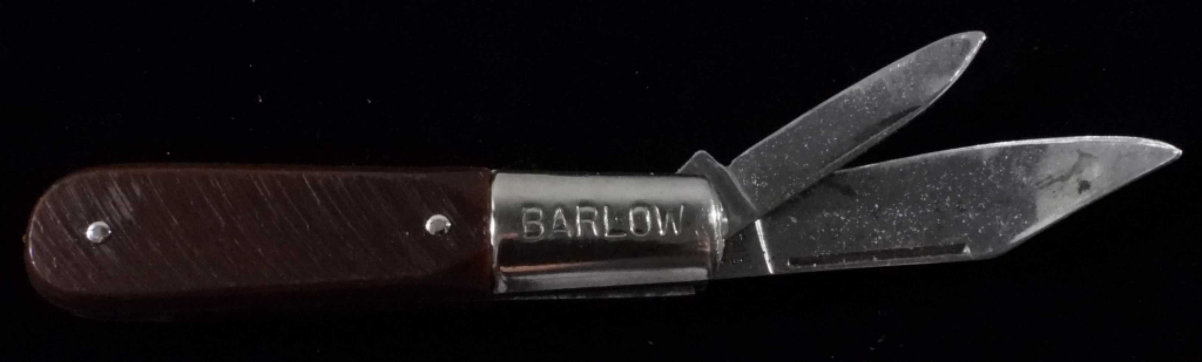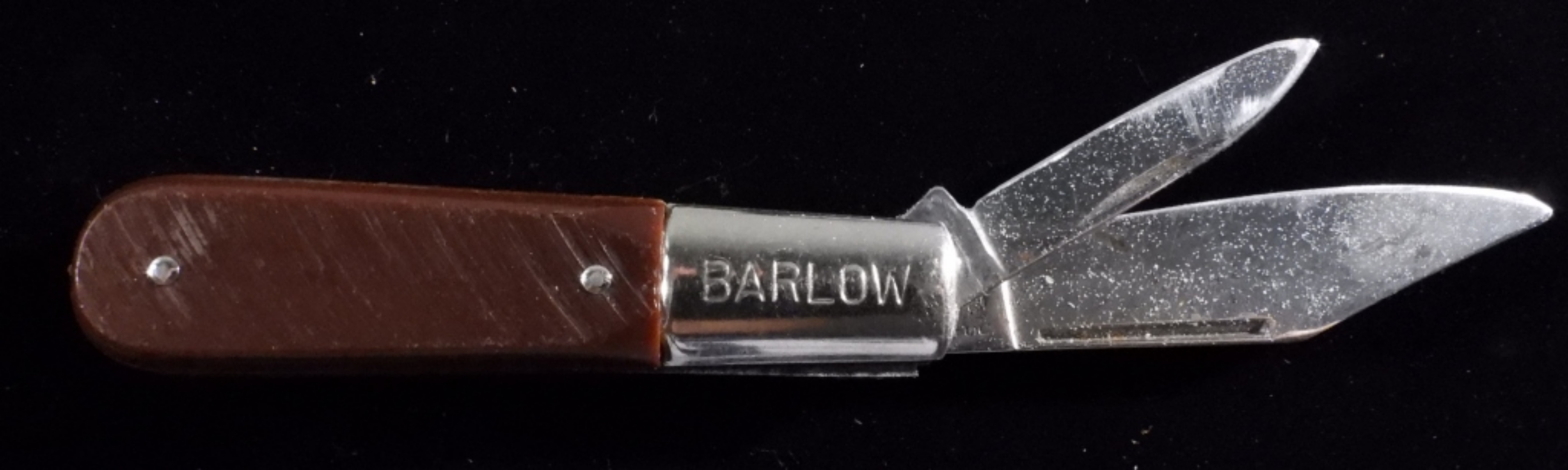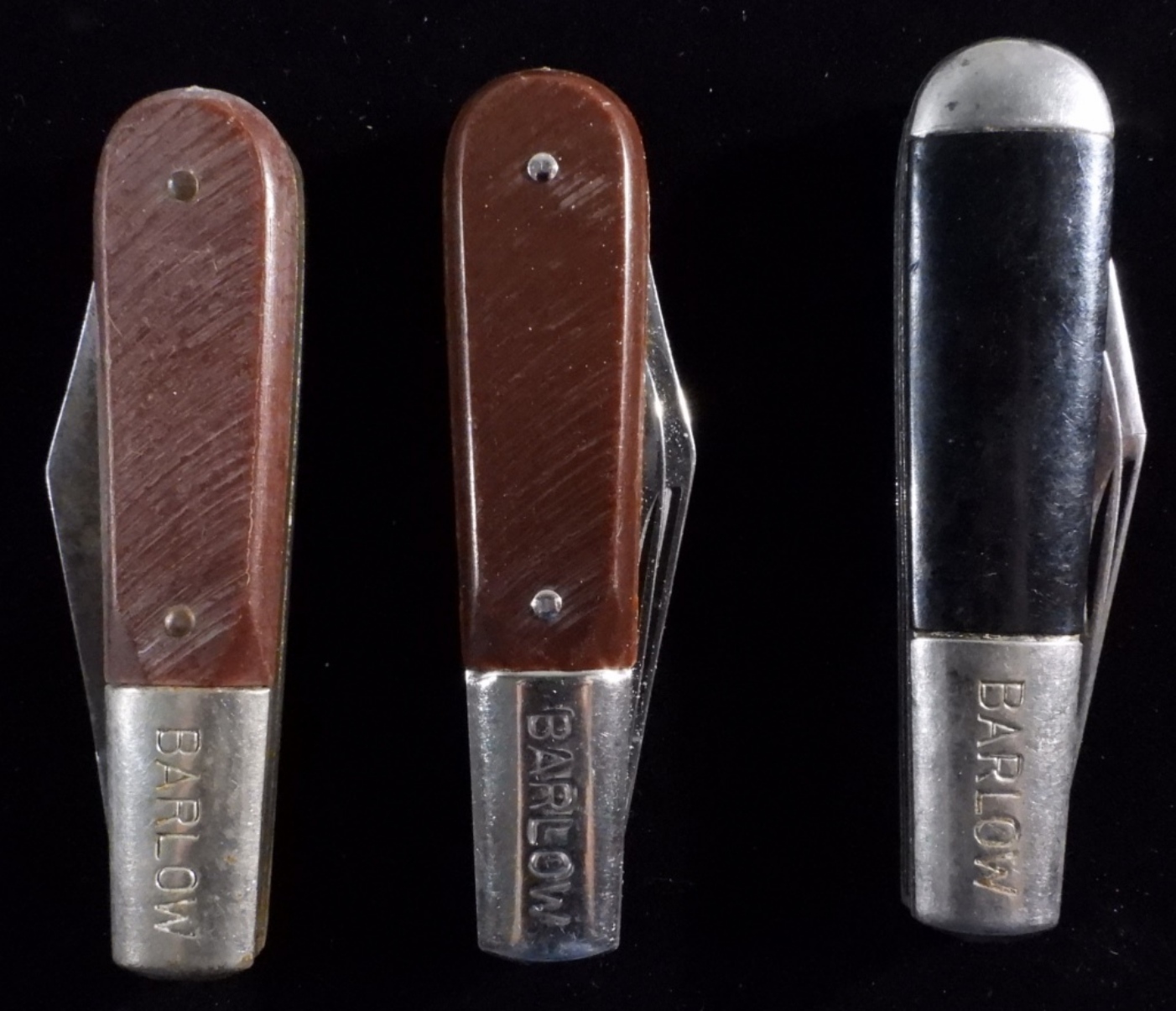 All three are two-blade pocket knives. Two brown handles. One black handle