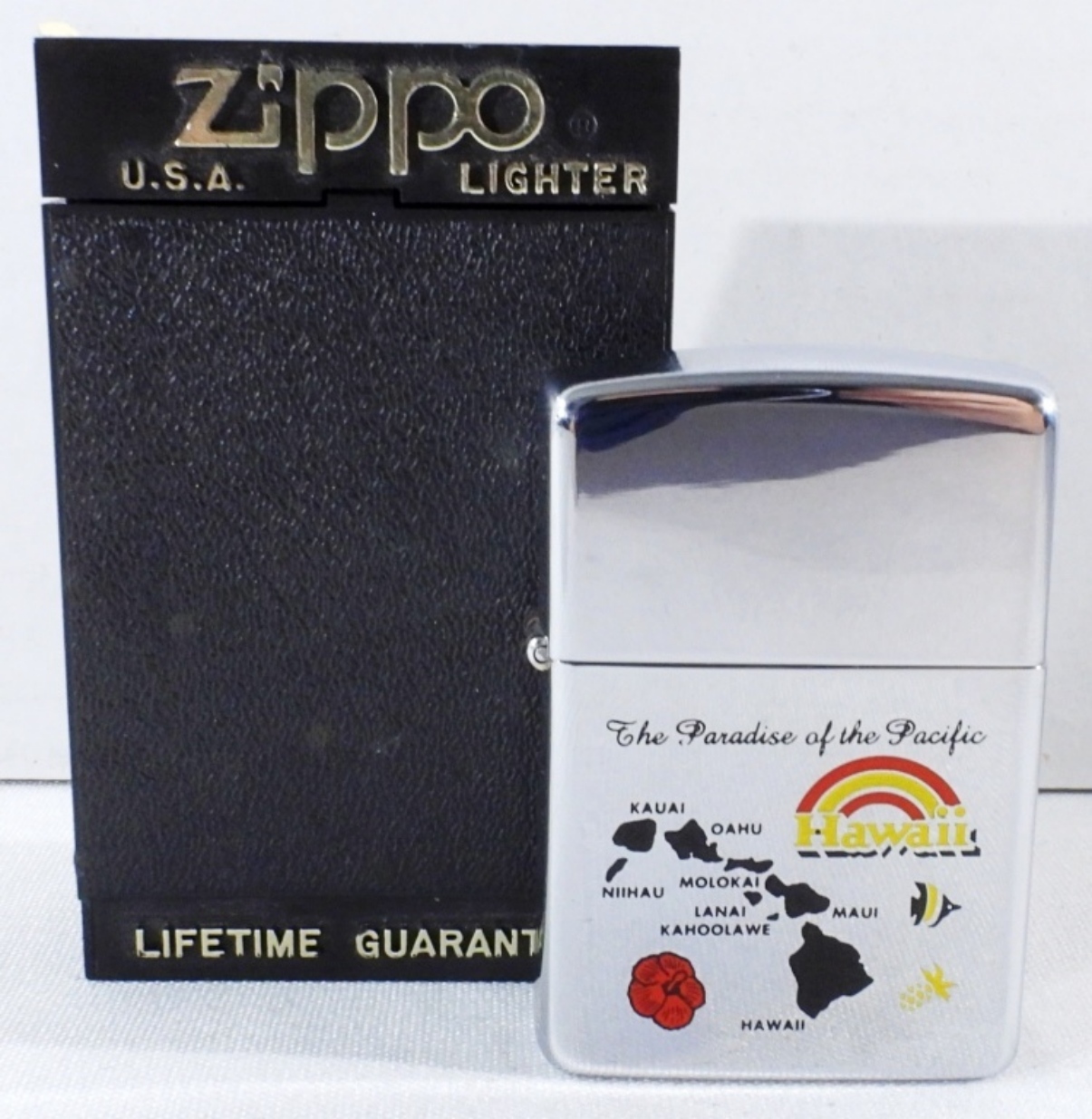 Comes in a box, 1992, ” The Paradise Of The Pacific” Map etched on the front.