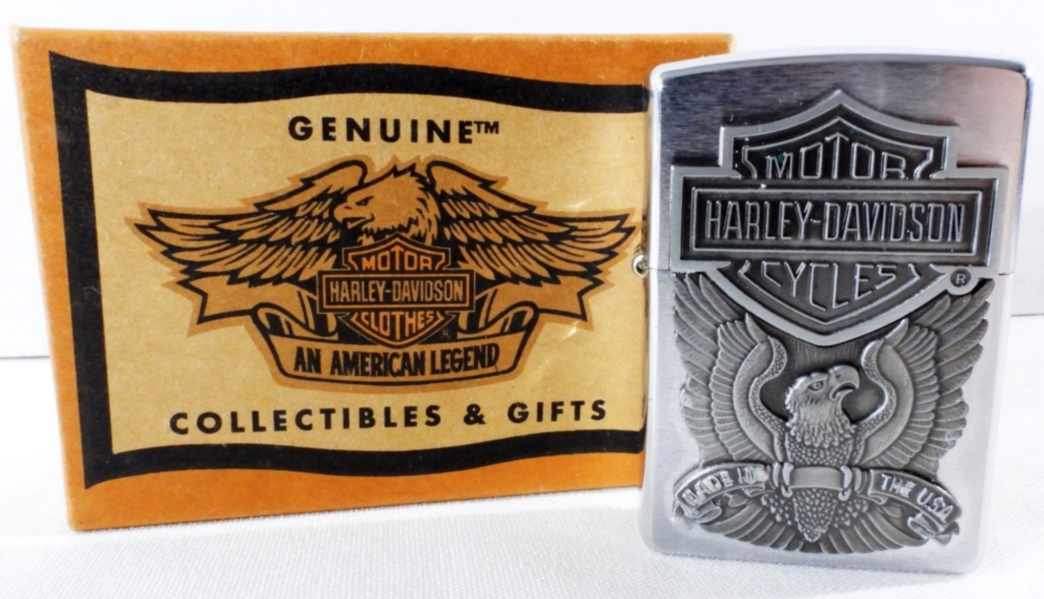 Comes in a Harley-Davidson box. The front has the logo and an eagle.