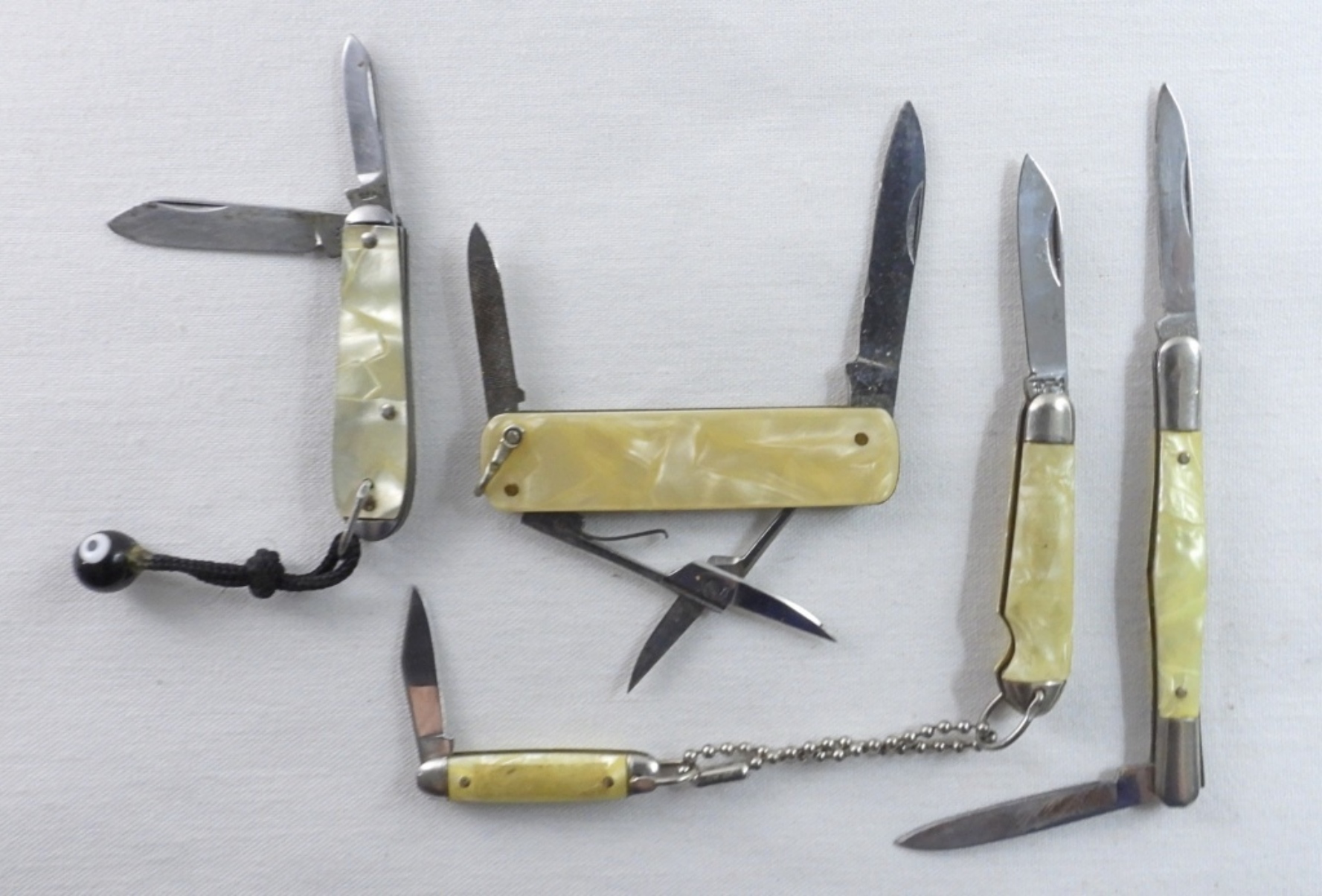 5 pocket knives ranging from 1 1/2″ to 3″ in handle length