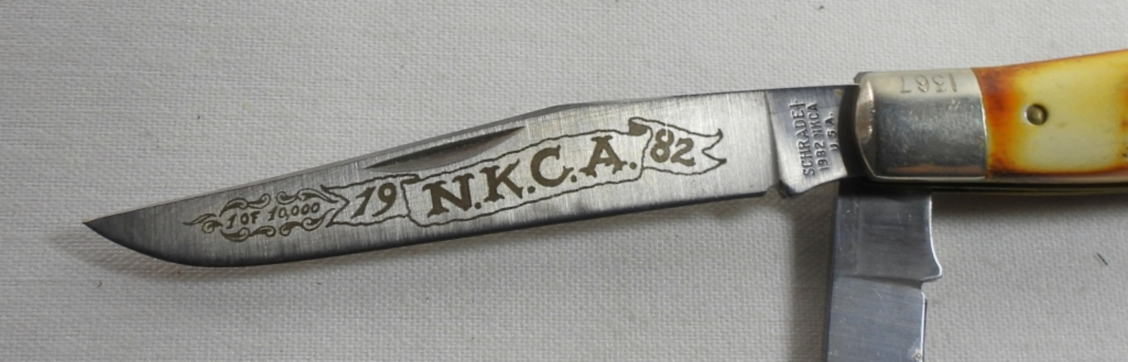 National Knife Collectors Association 1 of 10,000, 1982 Schrade knife, 2 blades at about 3″, closed length of 4″