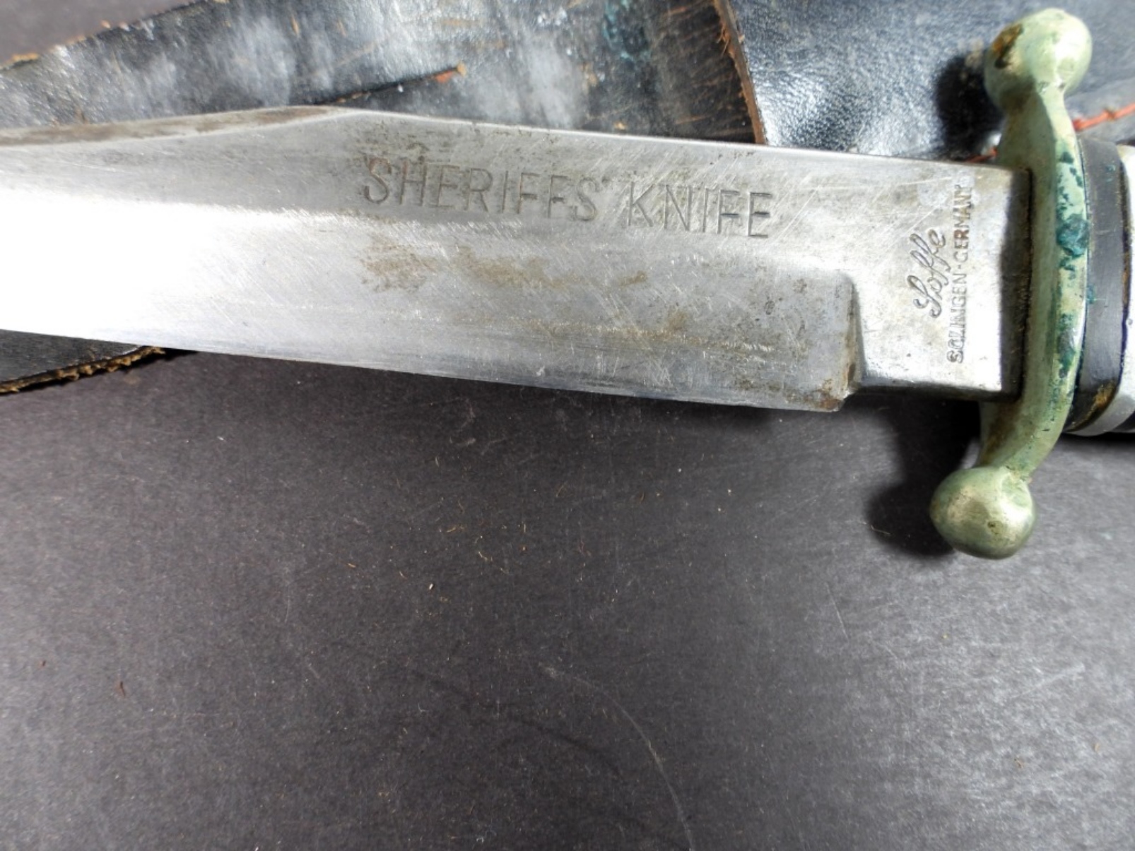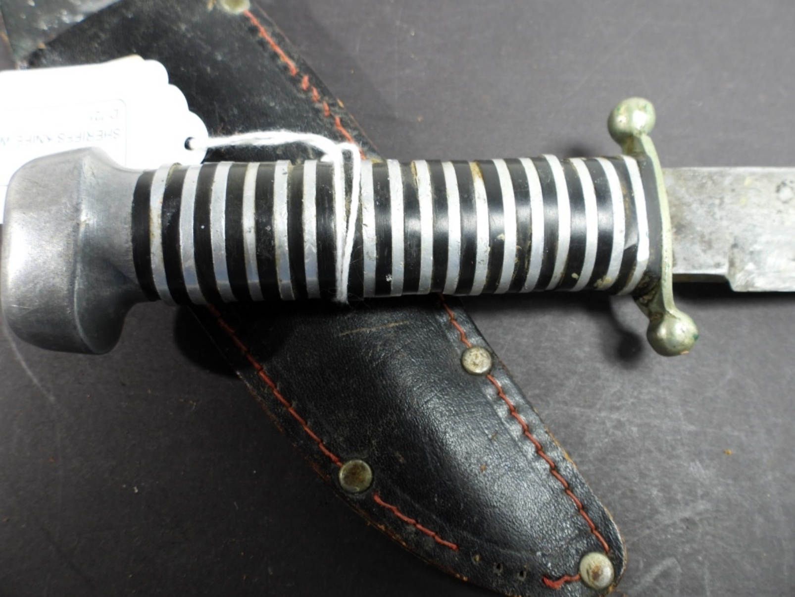 7” Sheriffs Knife with black leather sheath, full11 1/2”