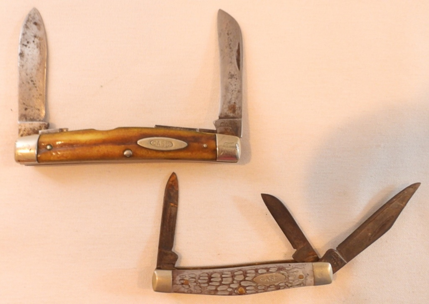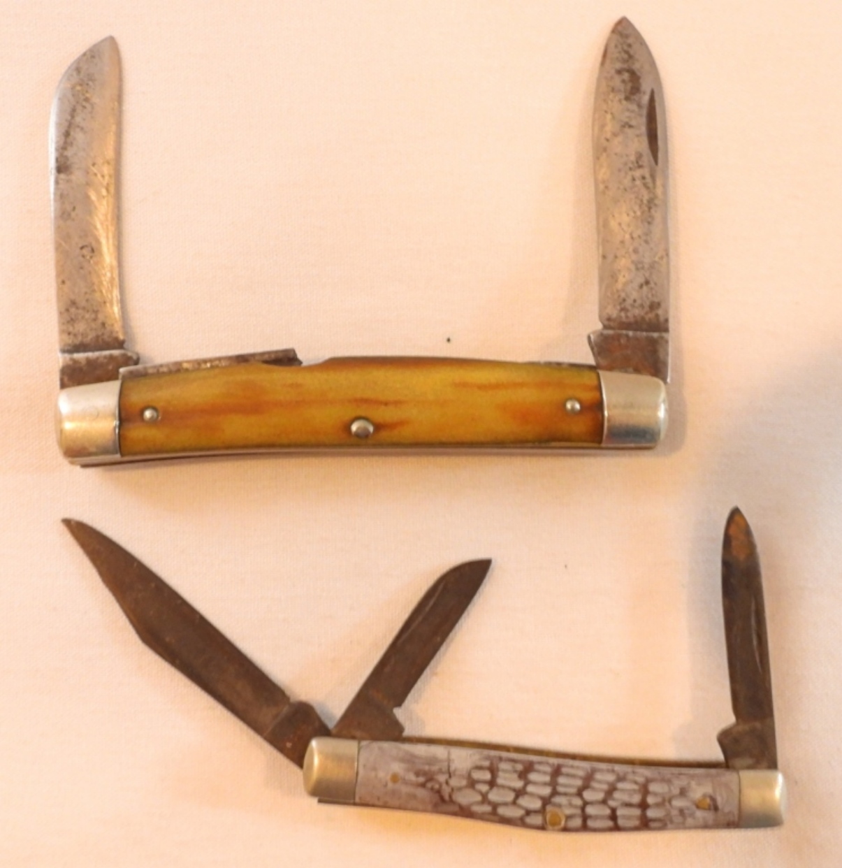 4″ handle 5488 has 2 of its 4 blades, 2 blades are missing, 3 1/4″ handle 5344 tri-blade, some rust on both