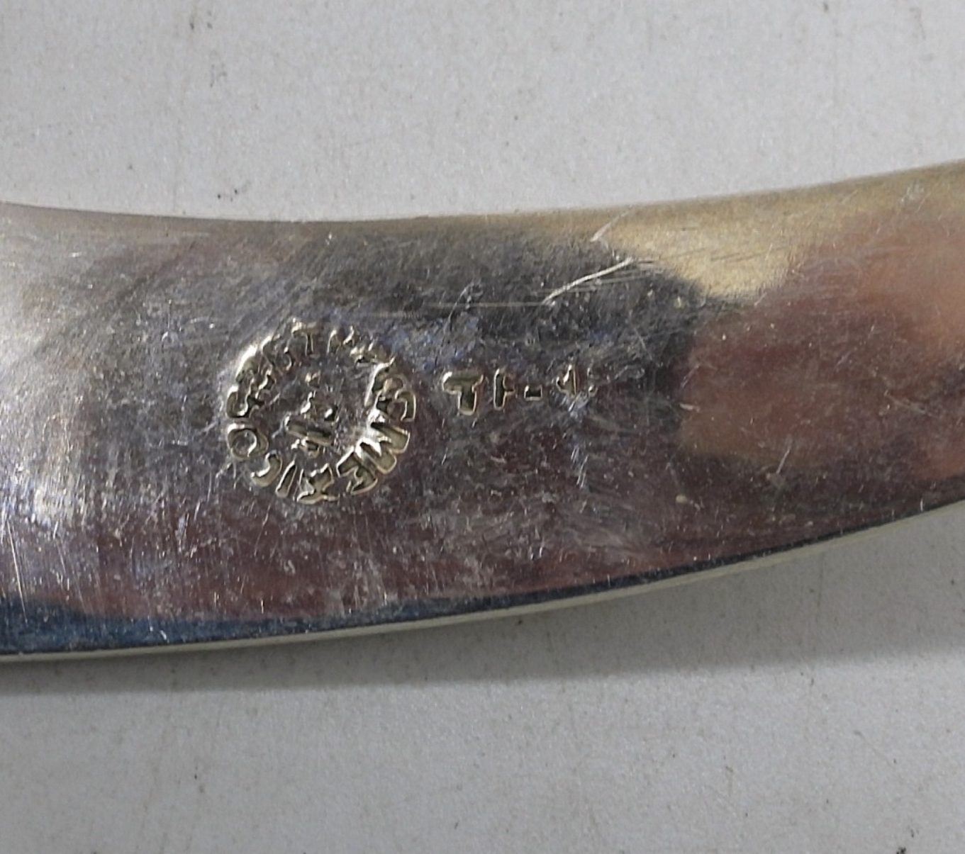 Sterling Taxco, Mexico Collar Style Necklace. Solid piece of silver, wide 6″ from front to back. Marked “TP-?? Taxco Mexico 925”. Stamp is hard to read.