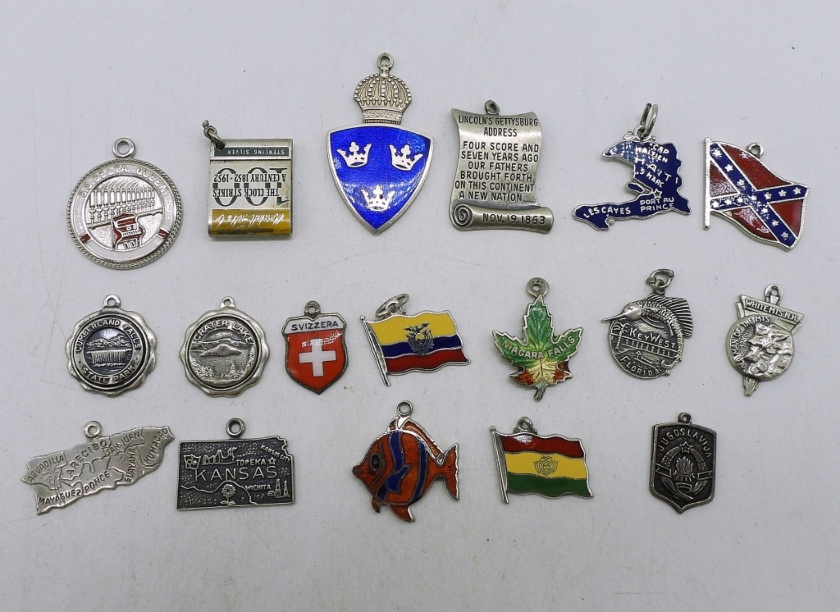 18 vintage sterling charms. Destinations, animals & more. (25.7 dwt)
