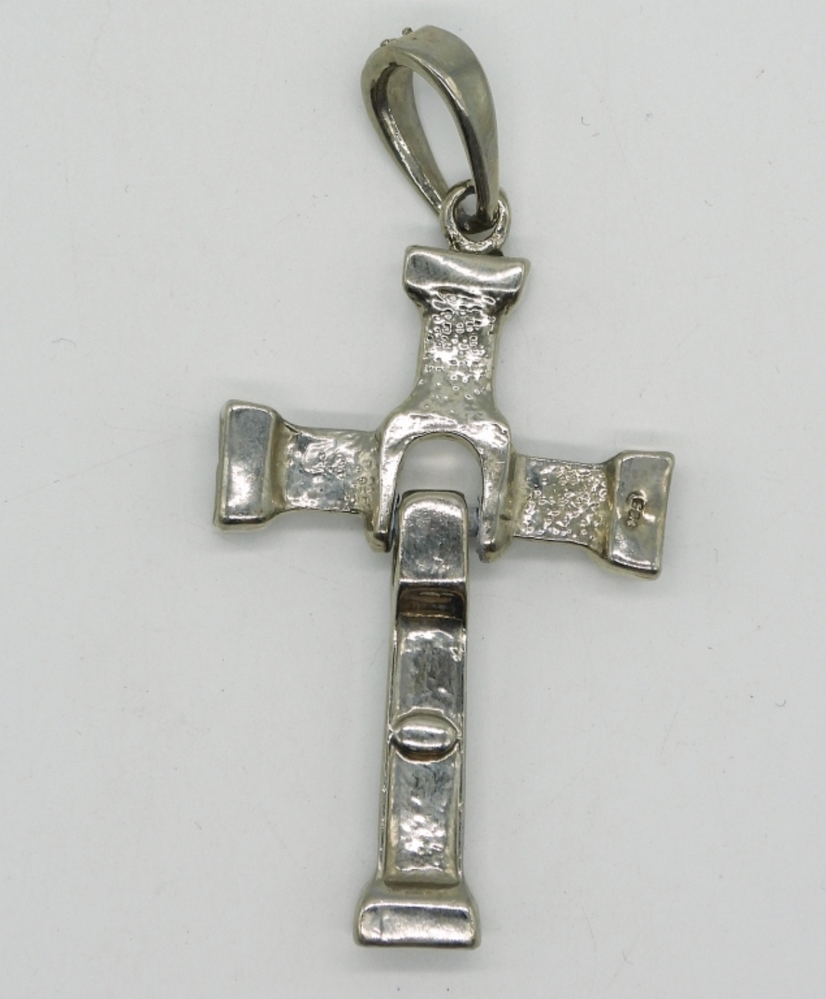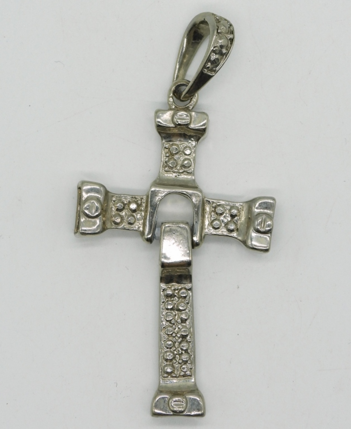 Sterling cross pendant with moving parts. 3.5″ long. 1.5″ wide. (19.2 dwt)