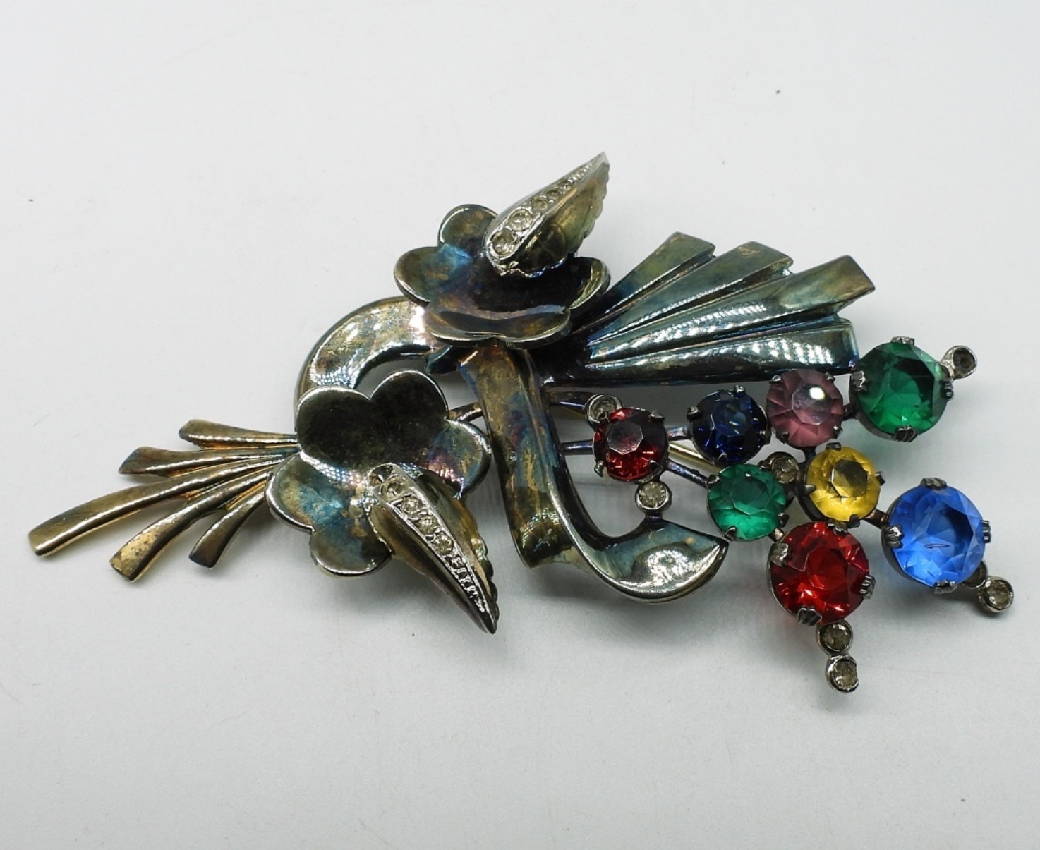 3.5″ Sterling Brooch with colorful rhinestones. (18.7 dwt)