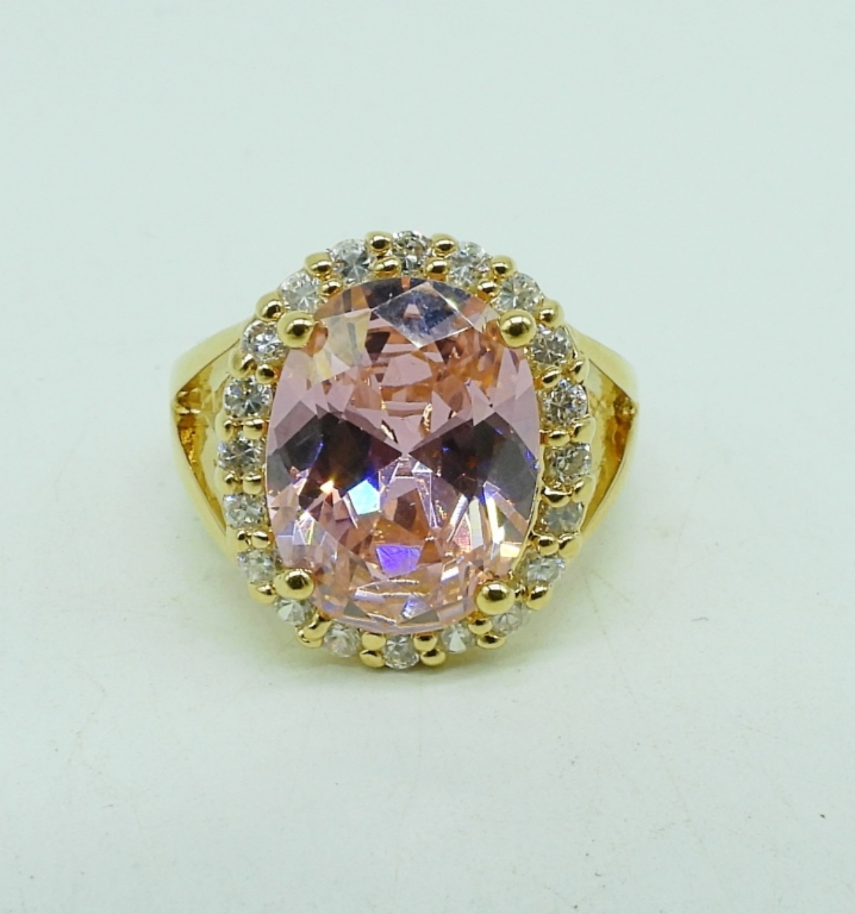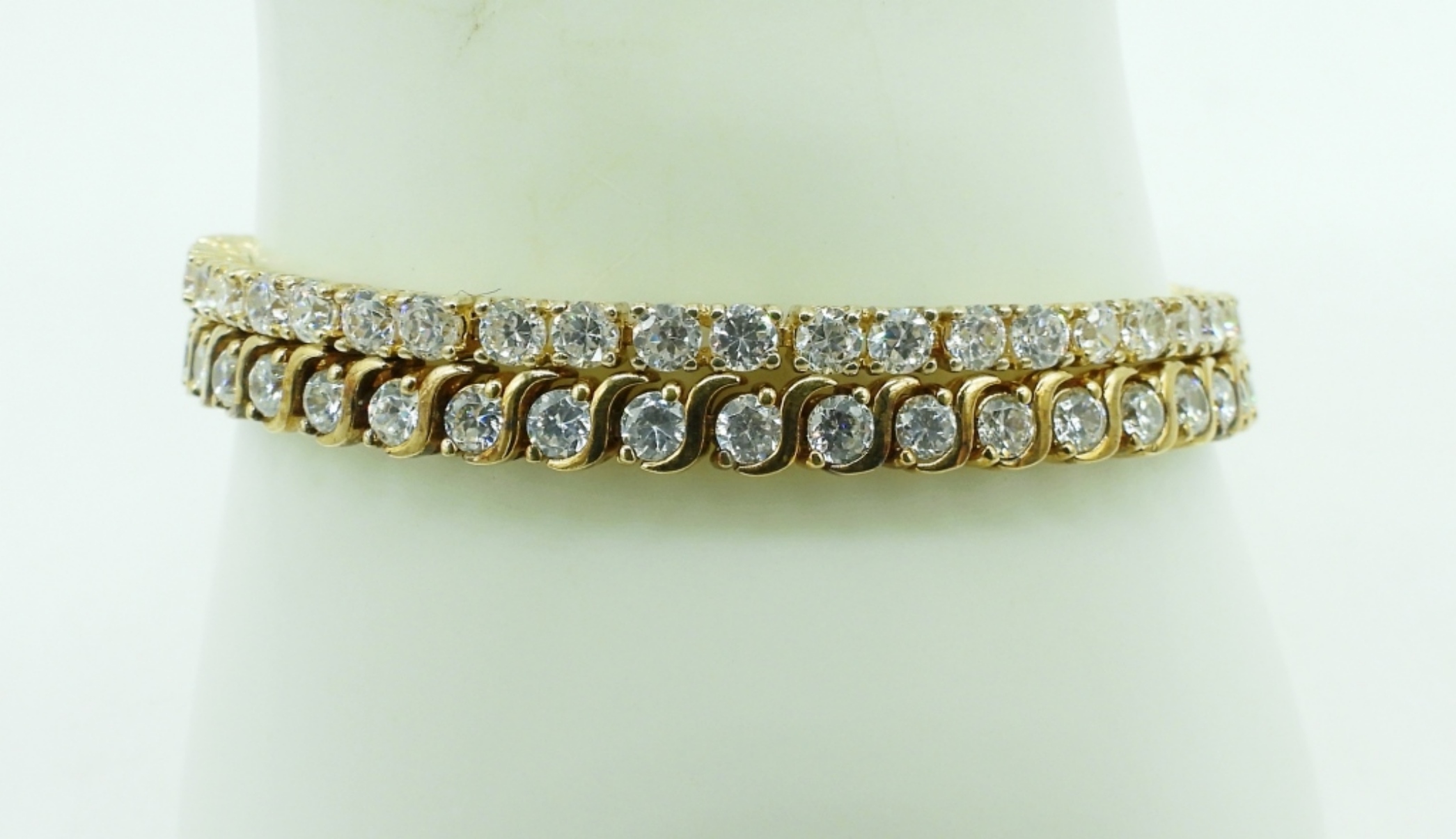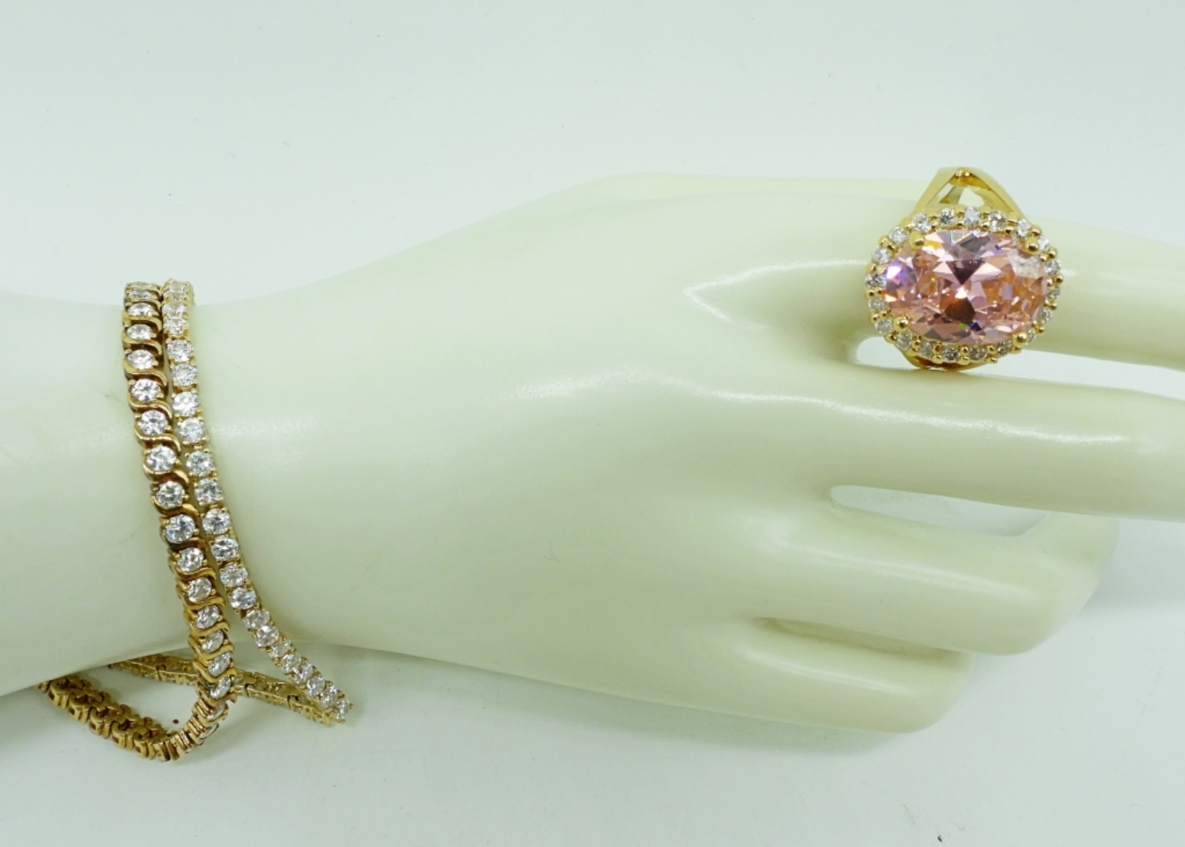 Two Gold Tone Sterling Tennis Bracelets, 7-7.5″. Sterling Gold Tone Ring with Pink CZ Gemstone, Size 10. (21.6 dwt)