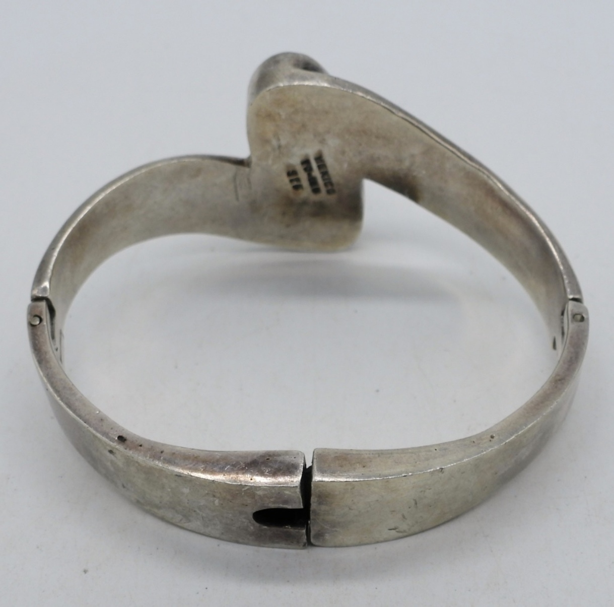 Sterling Taxco Mexico, black onyx hinged bracelet. Clasp opens & closes, but is broken. (40 DWT)