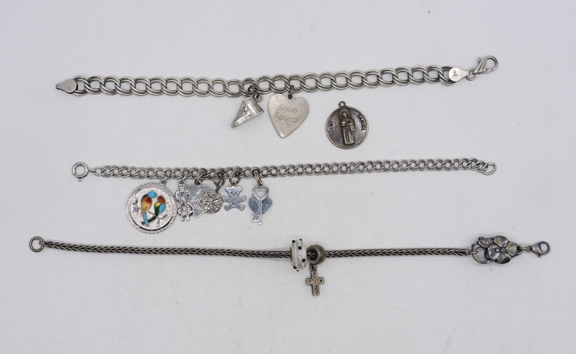 3 Sterling charm bracelets, 11 Charms. (33 DWT)