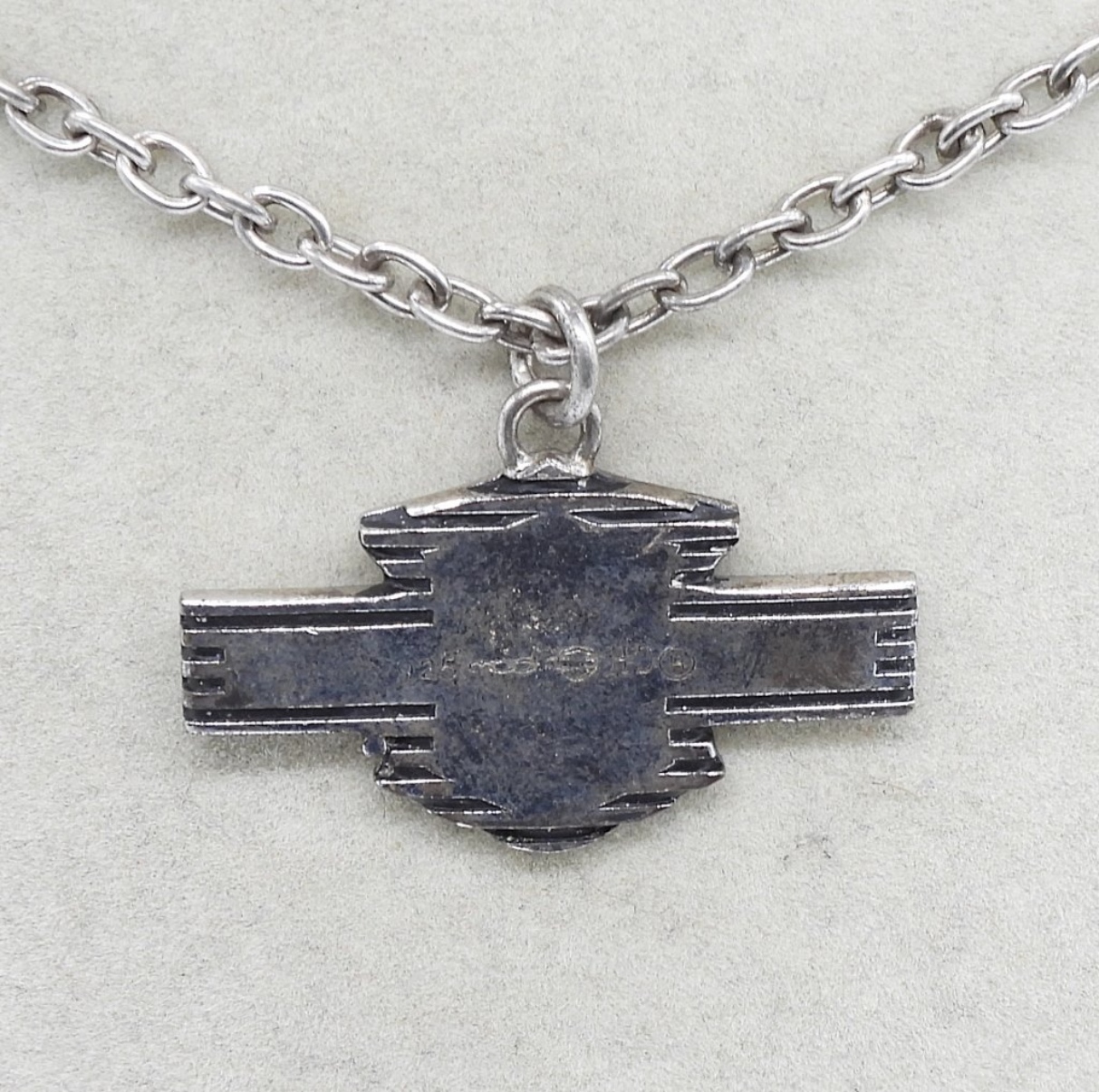 Sterling pendant on a 22″ sterling chain. Harley Davidson Motorcycles, marked 925 & with Harley logo. (12.7 dwt)