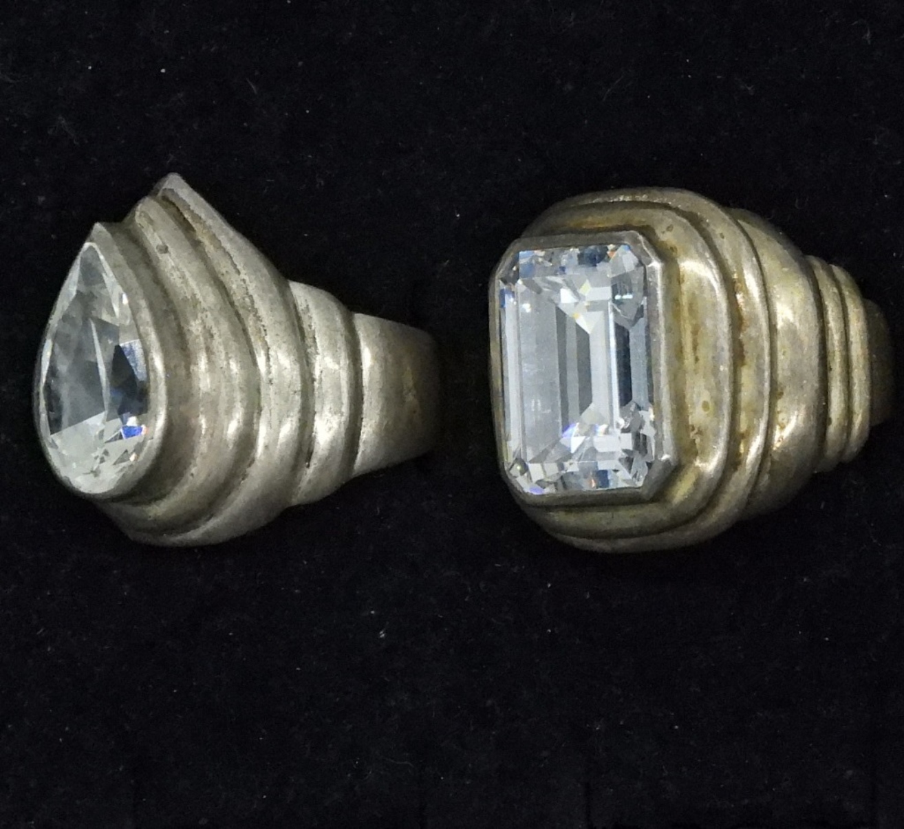 Two sterling simulated diamond rings. Large gemstones, size 8 & 8.5 (19.8 dwt)