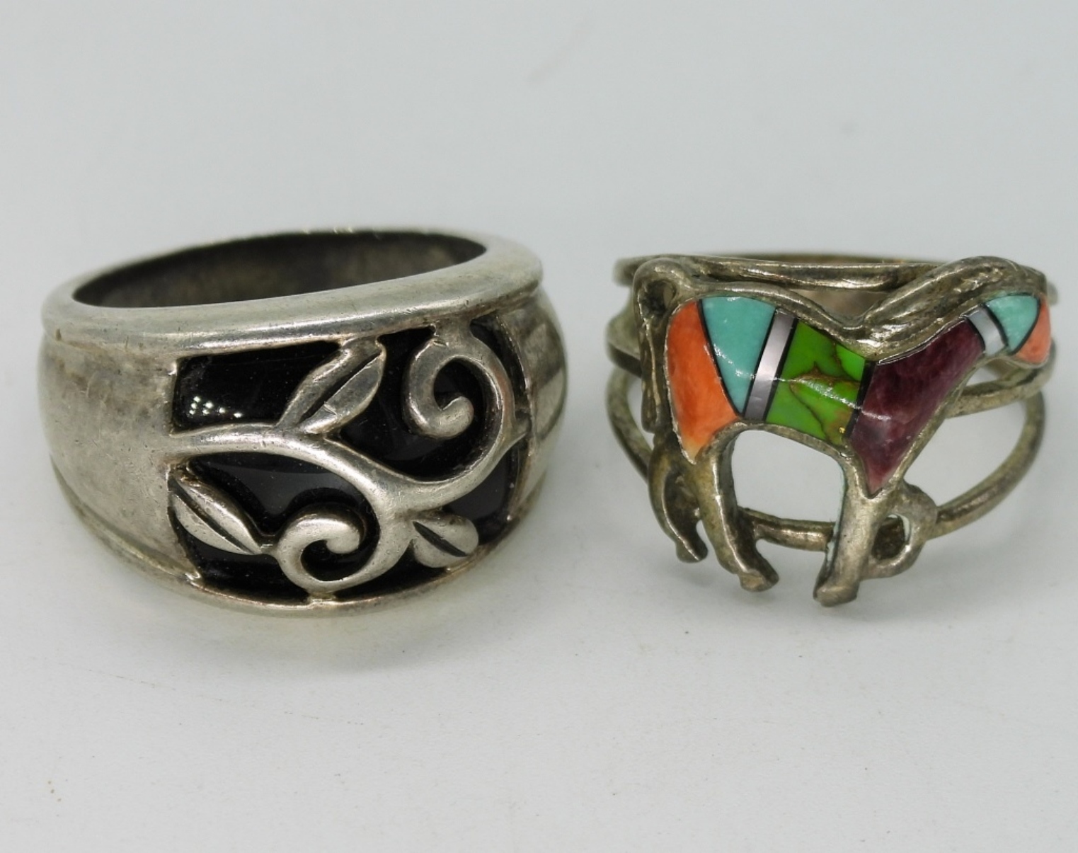 Two sterling rings, sizes 7.5 & 8. Pierced earrings and a 19″ necklace. (21.3 dwt)