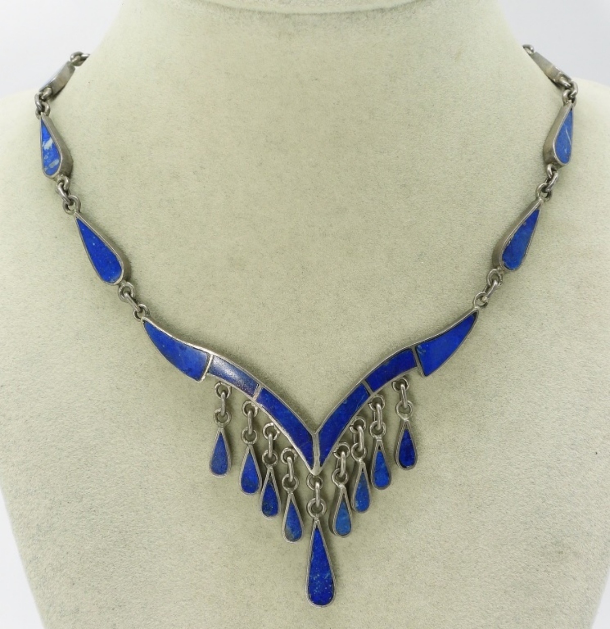 14″ Lapis Lazuli Vintage Sterling Necklace. (20.4 dwt)