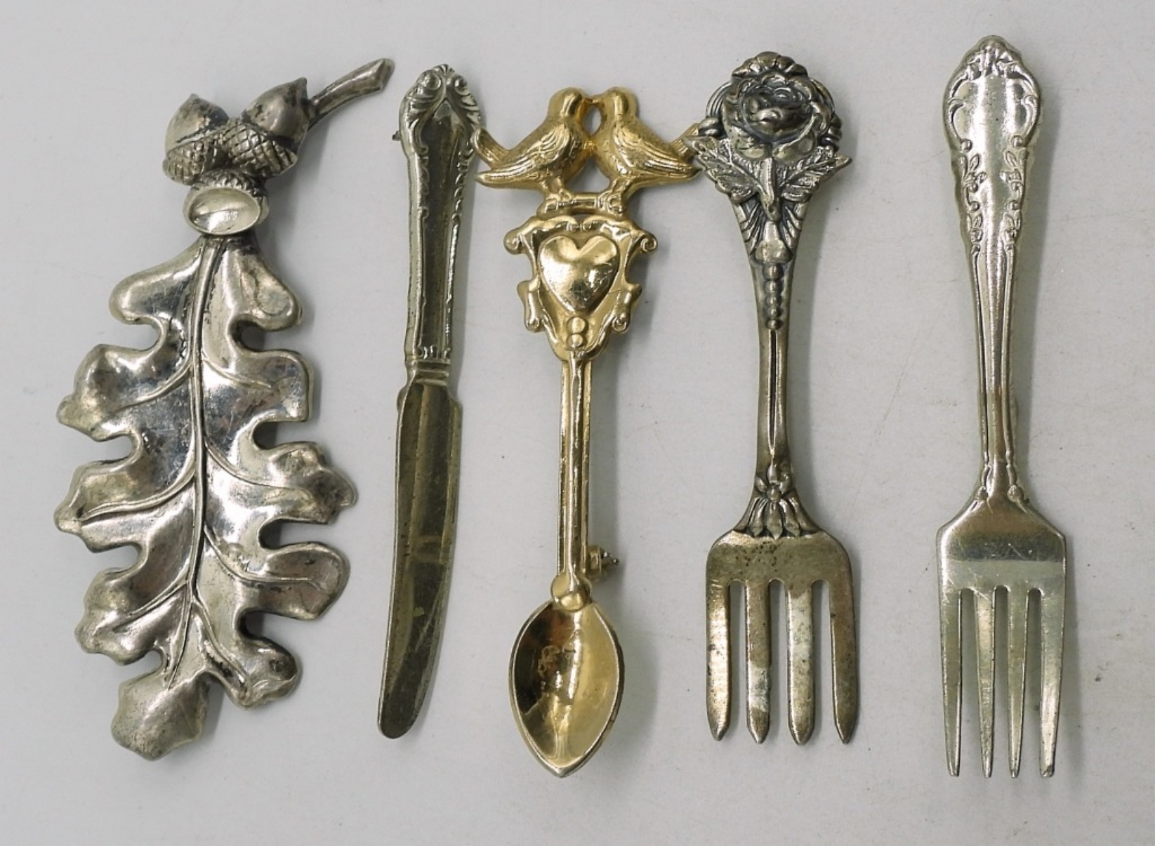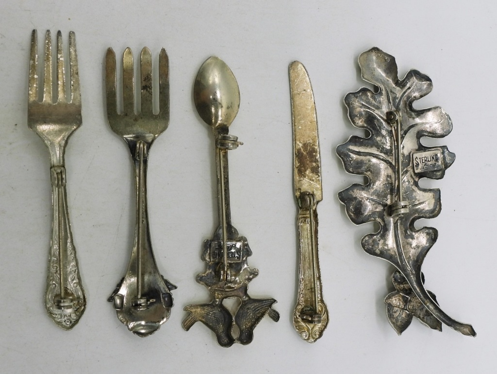 Five whimsical sterling brooches. 2.5-3″ (15.7 dwt)
