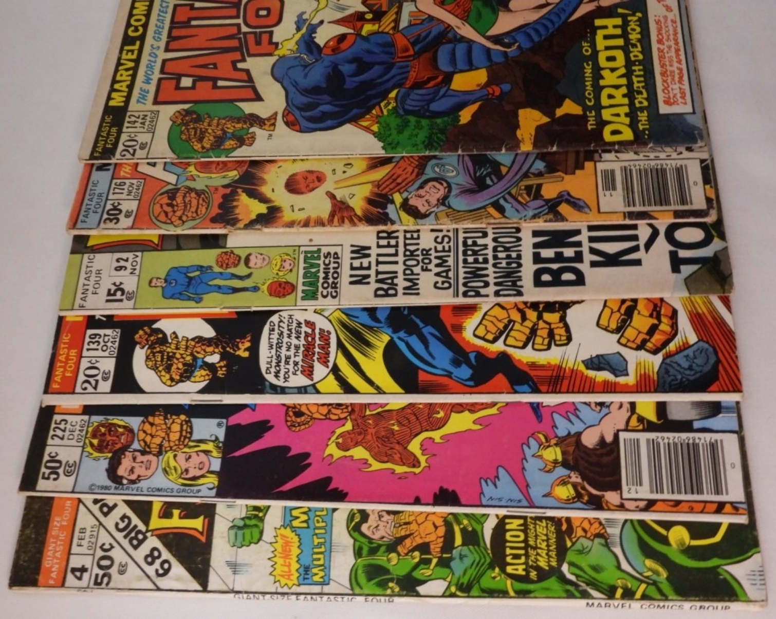 6 Fantastic Four comic books, which include A God Enraged, The Coming Of Darkoth The Death Demon!, and more, all in various conditions.