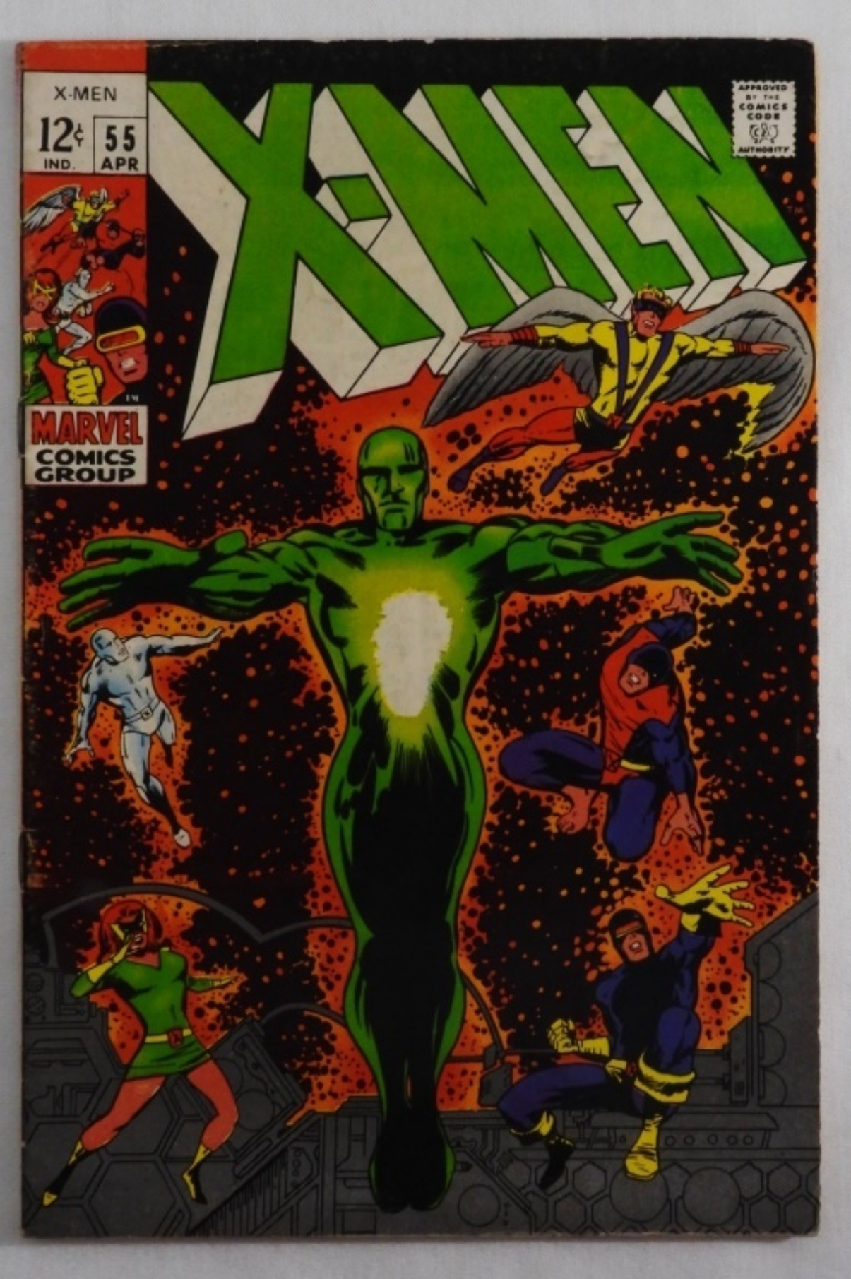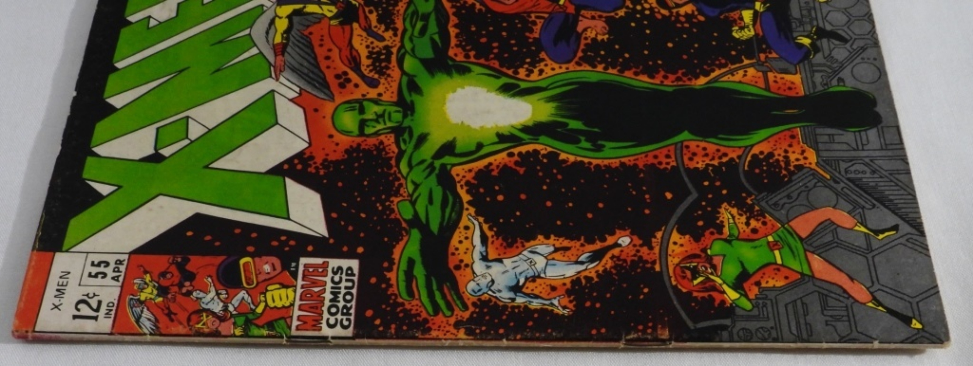 Marvel X-Men comic book, The X-Men #55, the edge on the top left side has some red staining, but it is not on the inside. (Marvel Comics April 1969)(G)