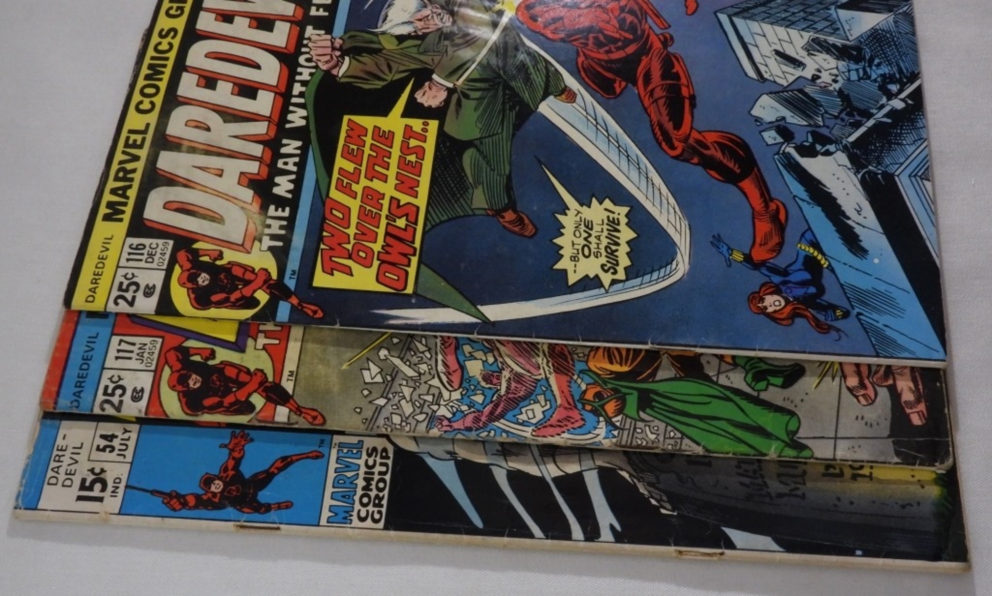 3 Marvel Daredevil comic books, which include “Here Comes.. Daredevil: The Man Without Fear”, and more. All in various conditions.