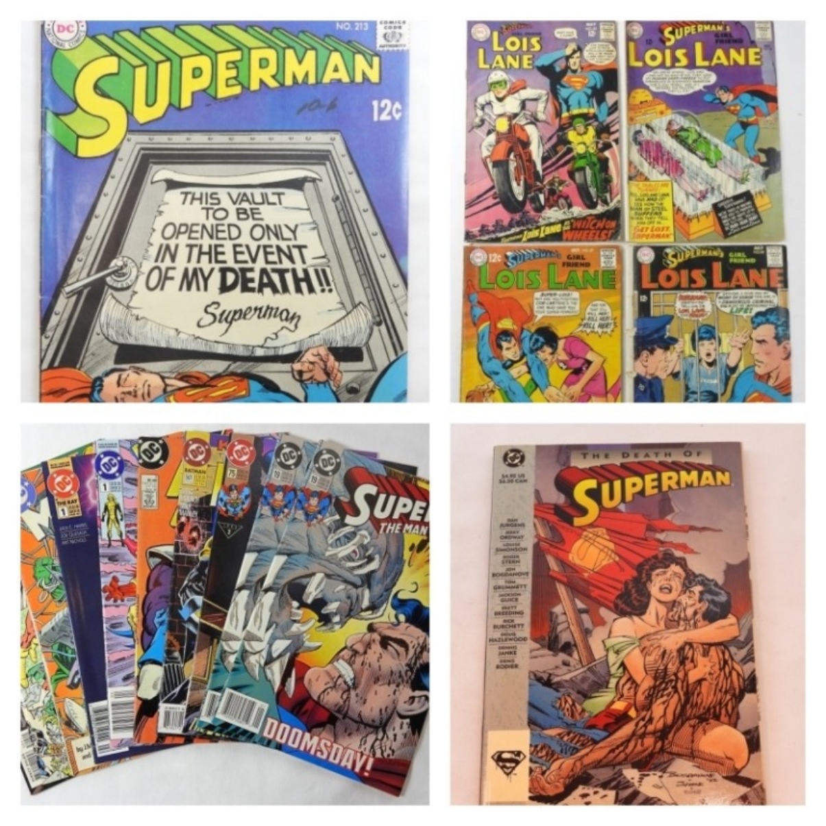All in various conditions, 4- Superman’s Girlfriend Lois Lane, 1993 The Death Of Superman, Superman The Man Of Steel, The Ray, Batman, Power Girl and more