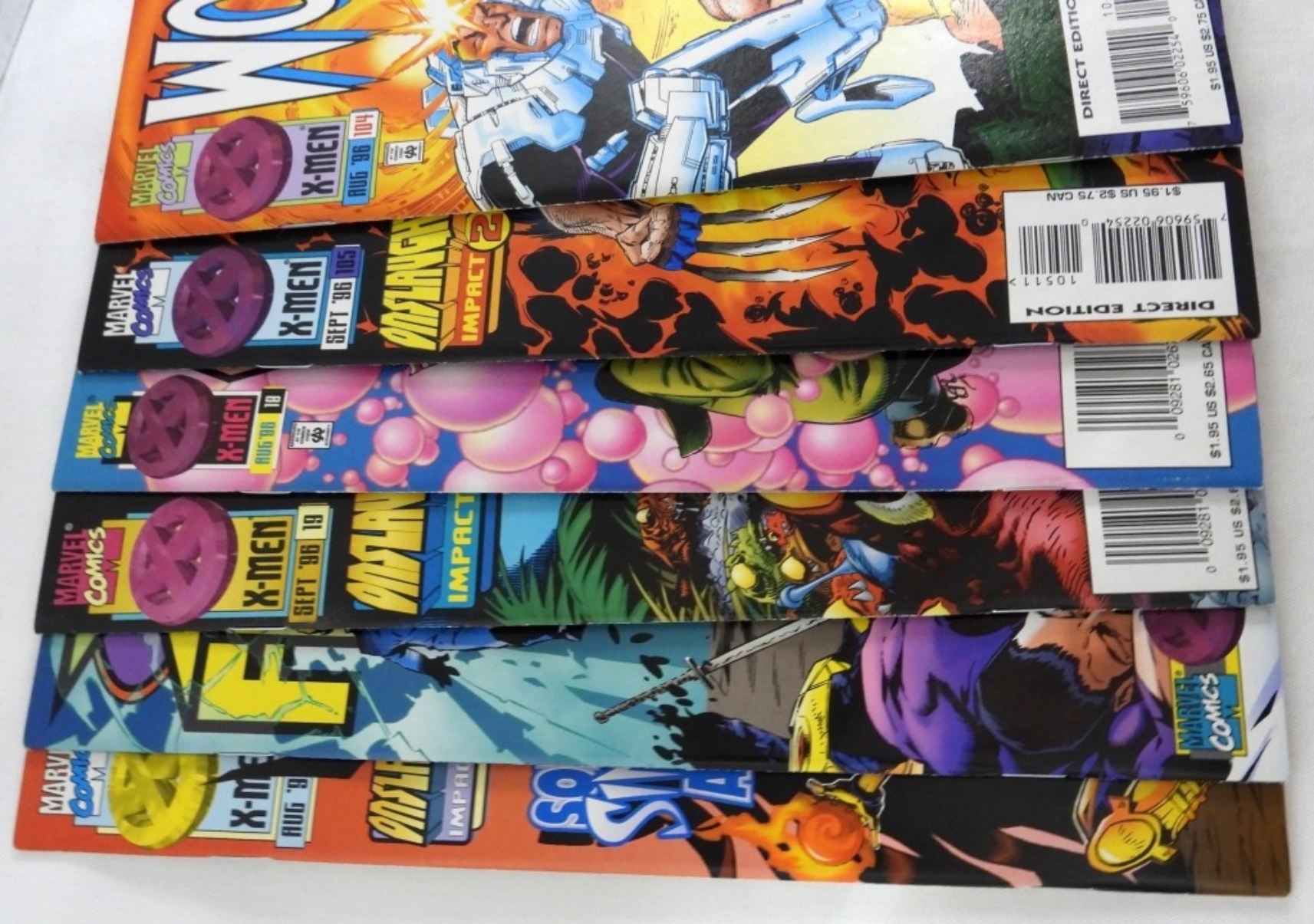 6 X-Men comics from Onslaught series, #57, 58, 19, 18, 105, and 104, 1996, G-VG