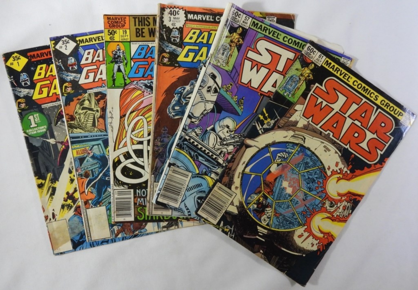 1982 #57 & #61 Star Wars, 1978 Battle Star Galactica #1-3 and #14 (1980), various conditions