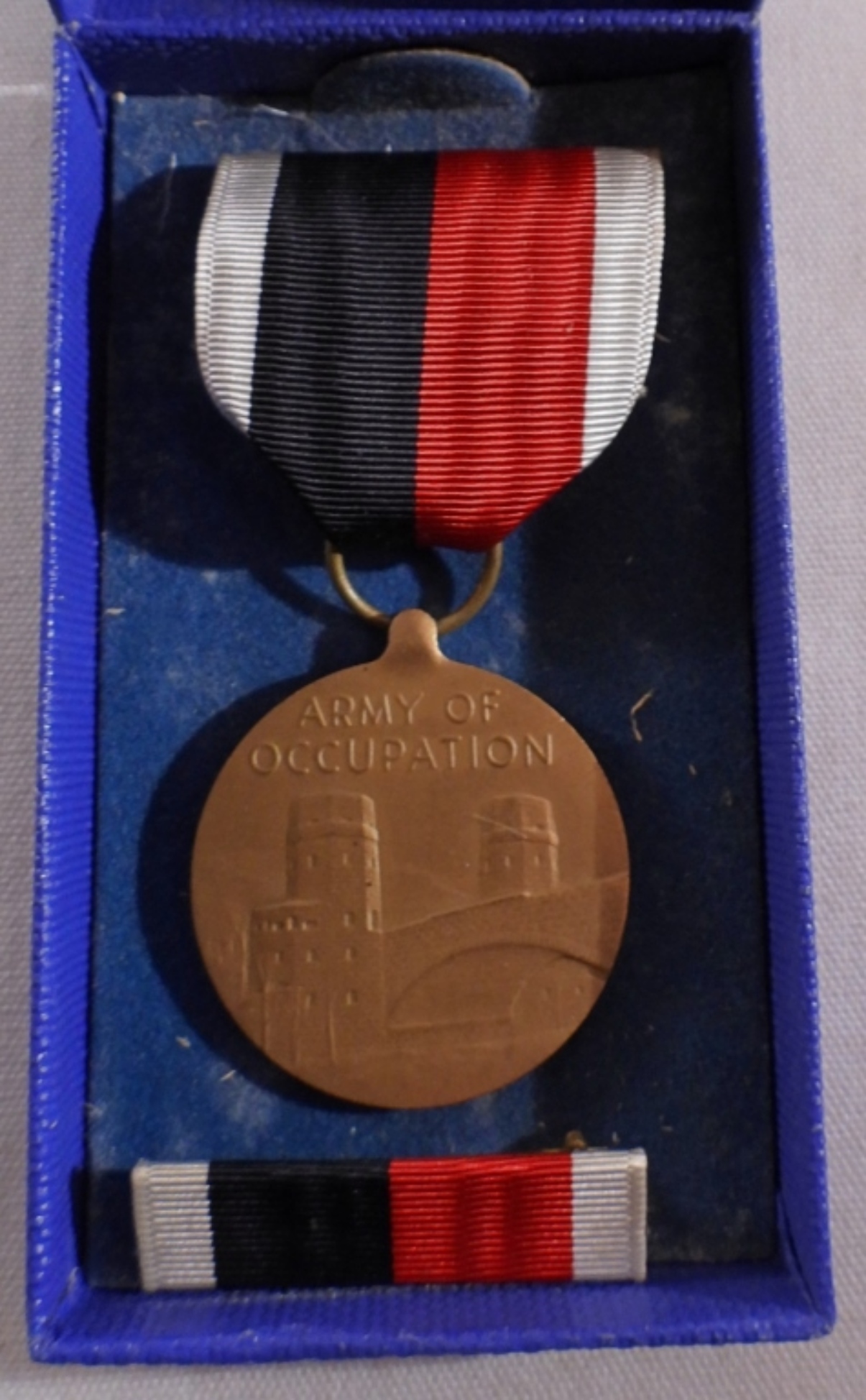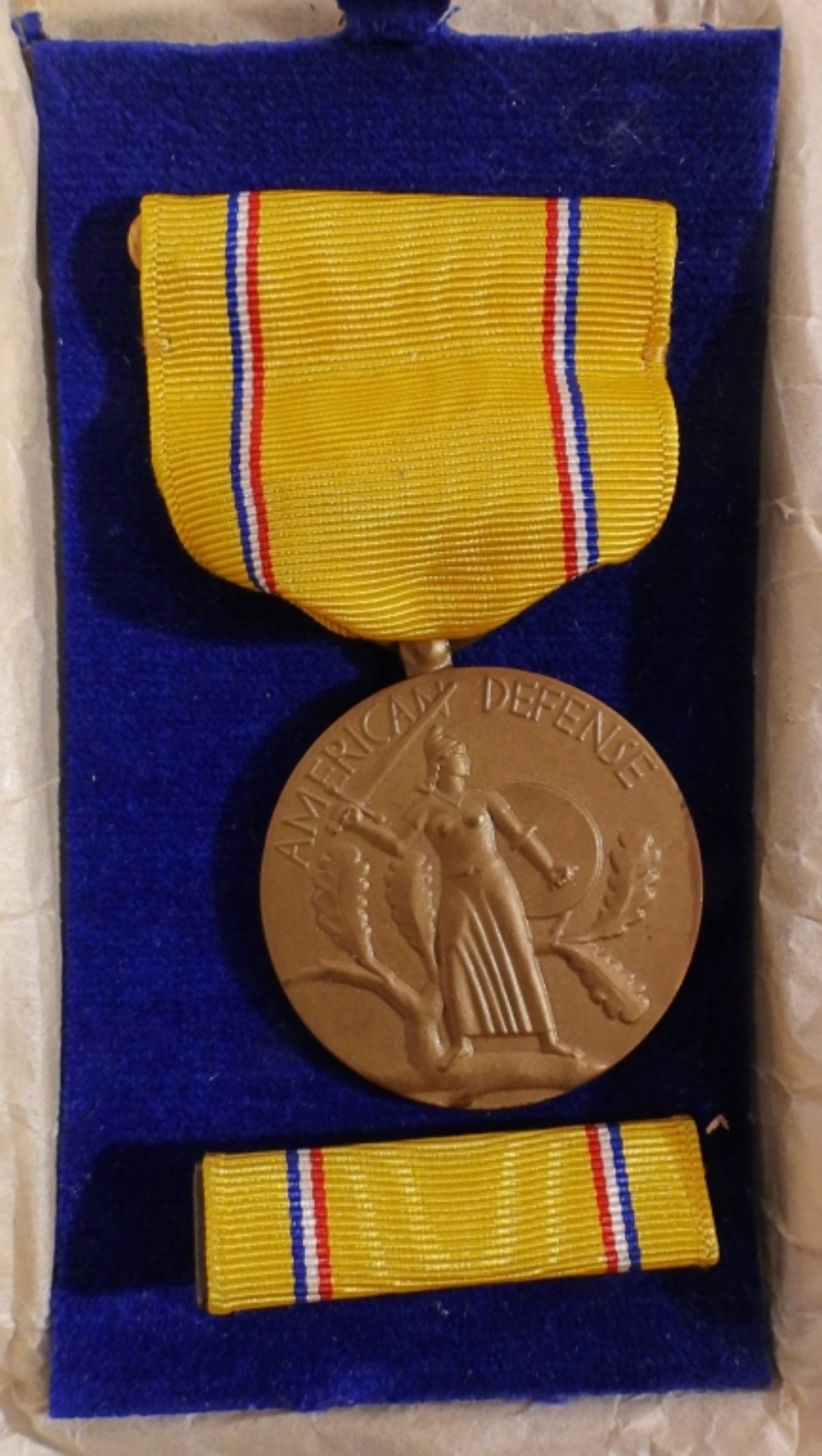 WW2 1945 Army of Occupation service medal set, and a 1945 WW2 American Defense Campaign medal set (box isn’t in good shape, all 4 corners are broken open).