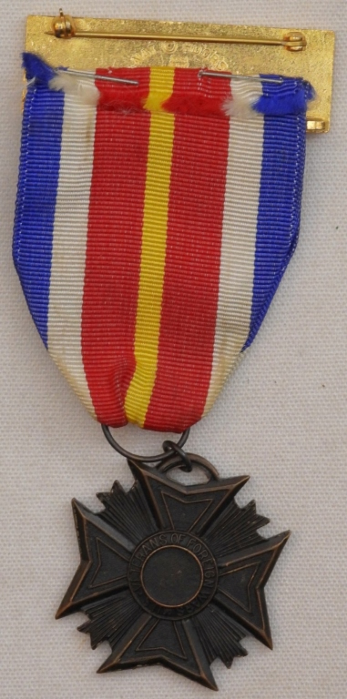 Veterans of Foreign Wars Medal and Ribbon, stitching is coming undone on the ribbon, but barely.