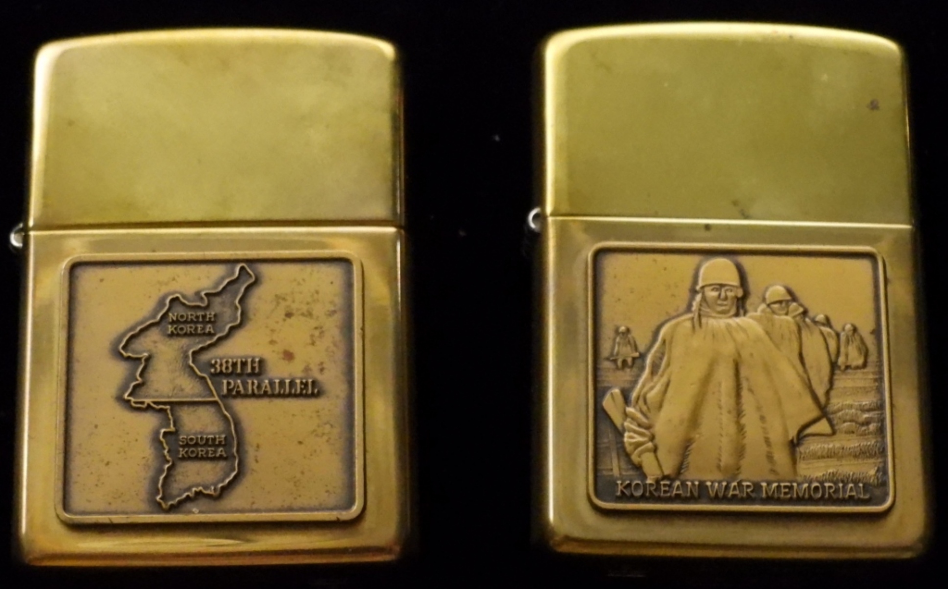 1996. Both are unfired. They come in a Zippo tin case. Brass Zippos, One Korean War Memorial on the front. The other Map of Korea with the 38th Parallel