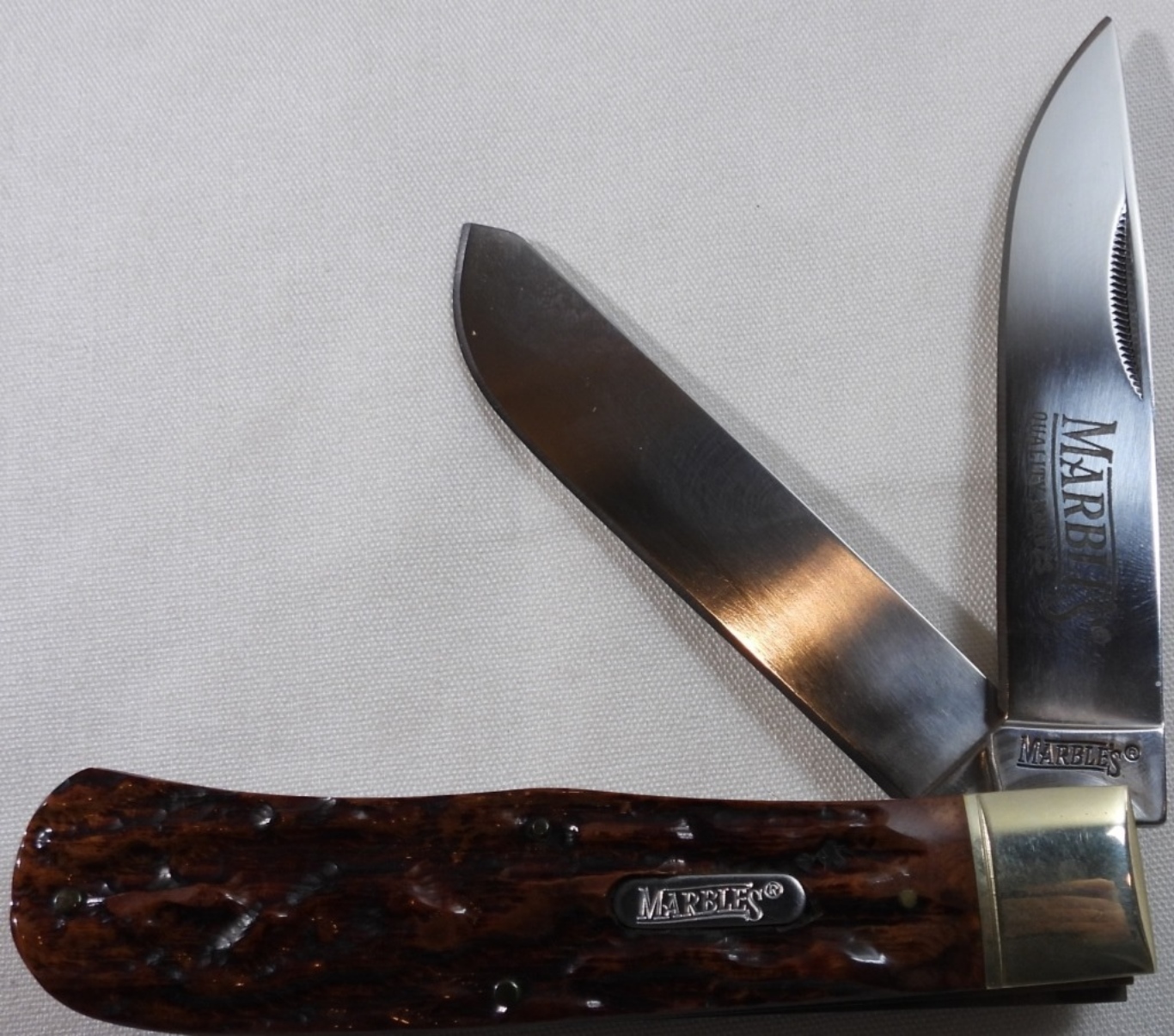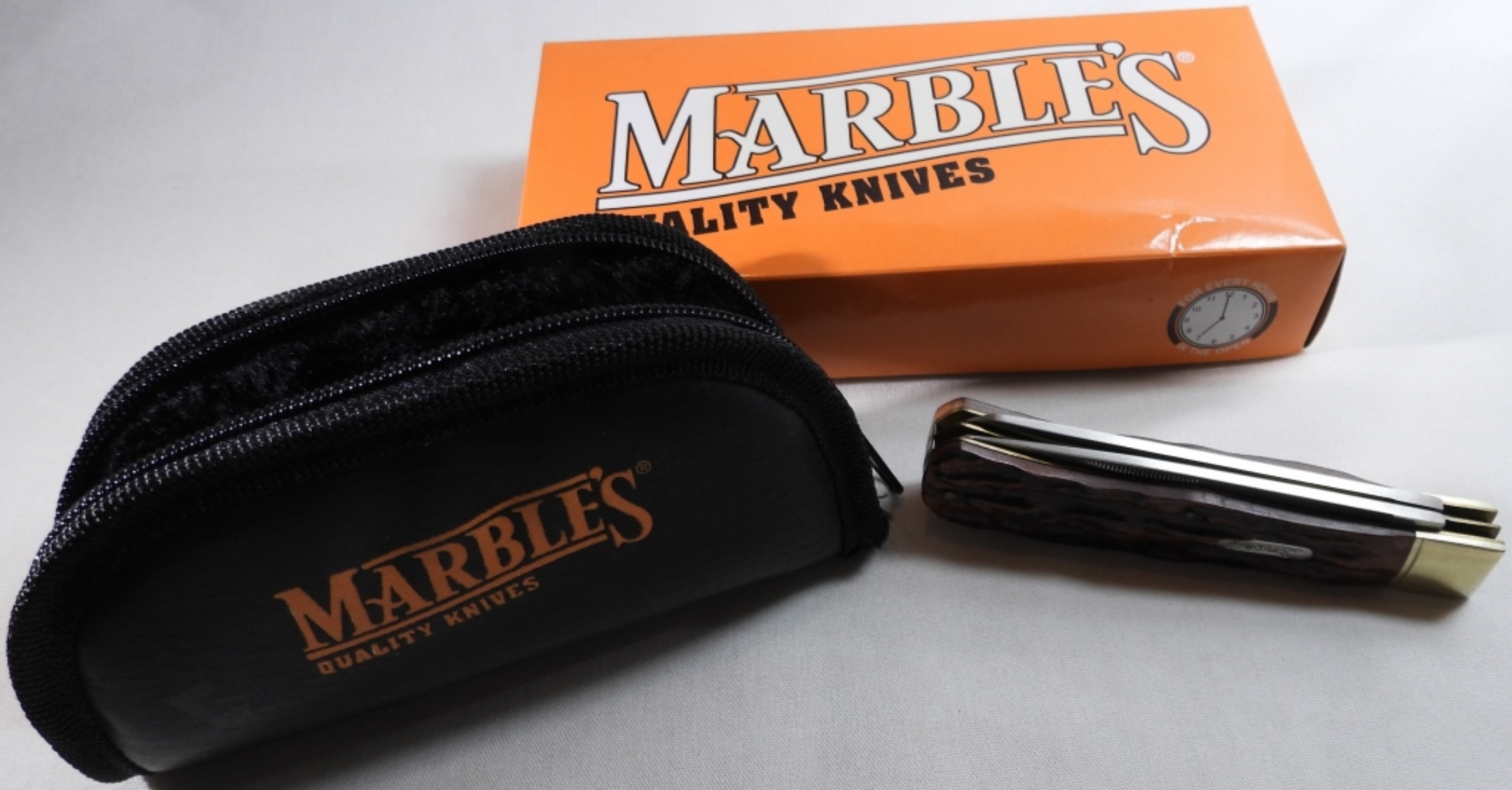 Marbles Brown Bone Folding Hunter 5 1/4″ Pocket Knife with zipper pouch and box