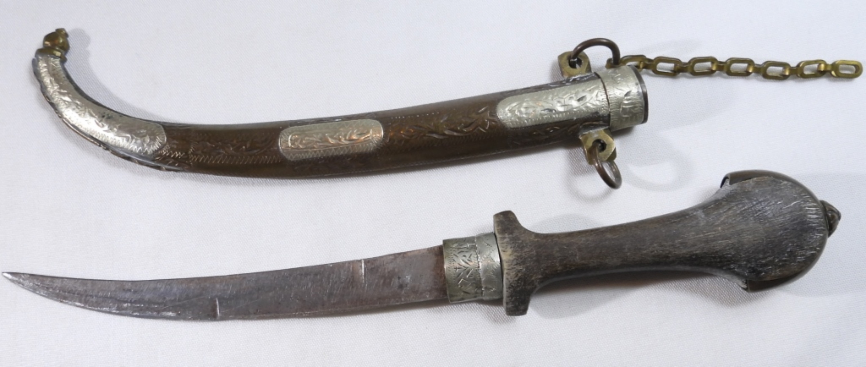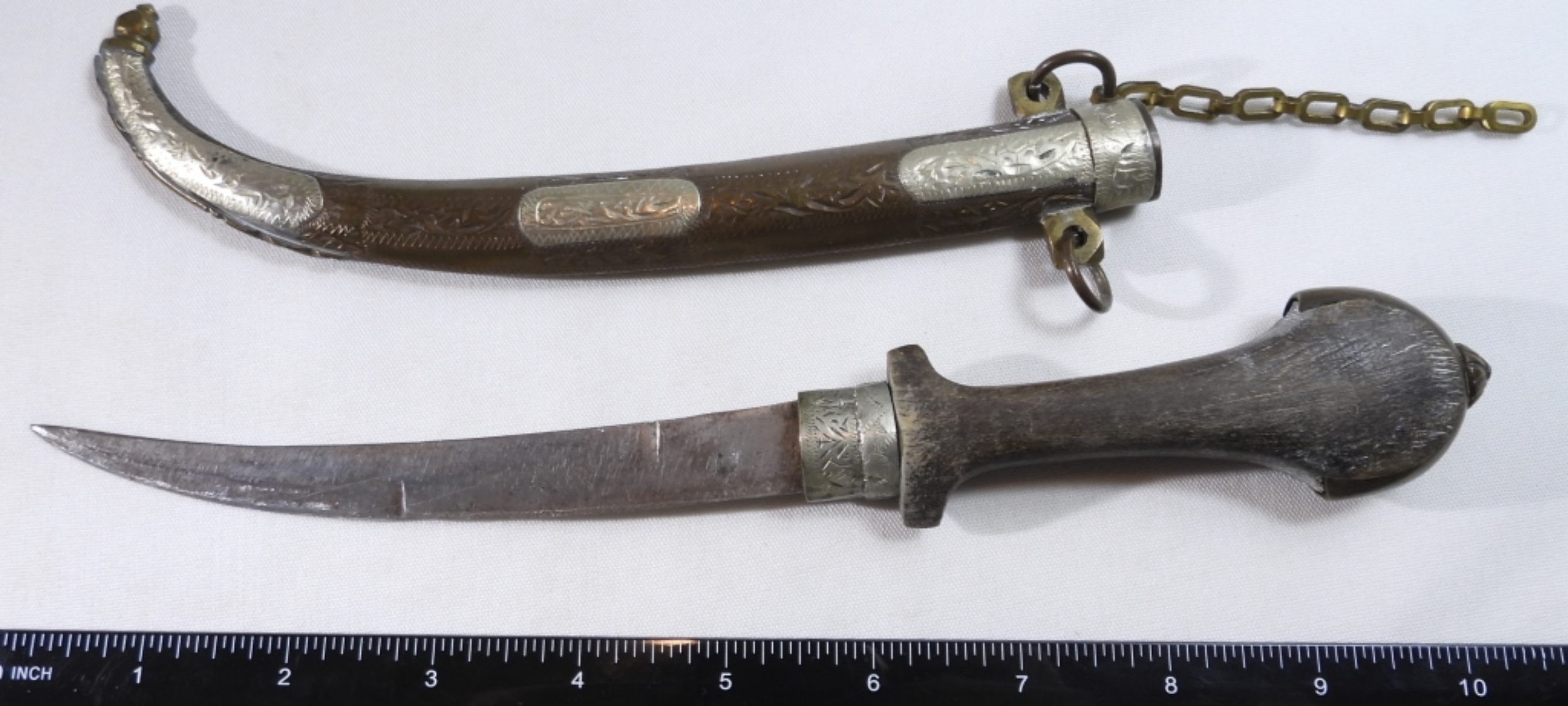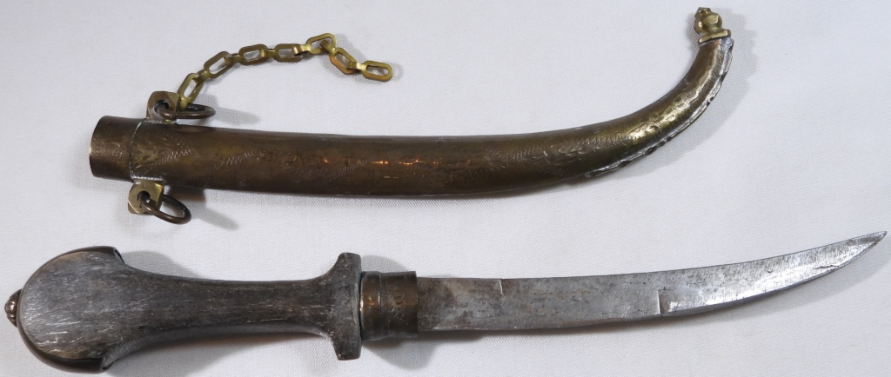 Used. Wooden handle and metal sheath
