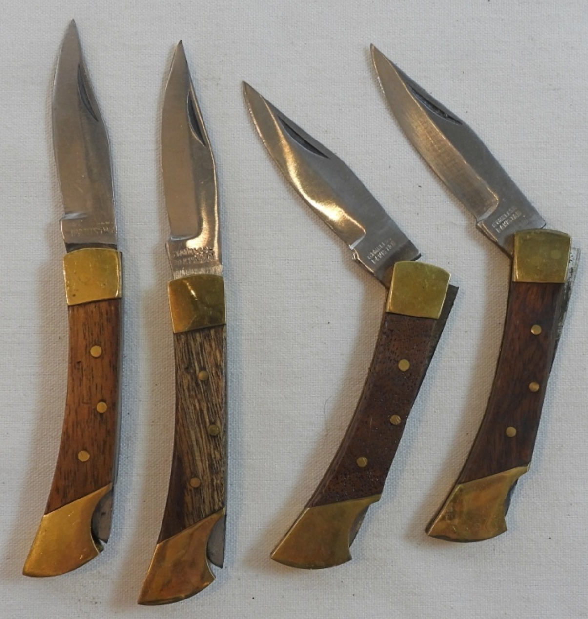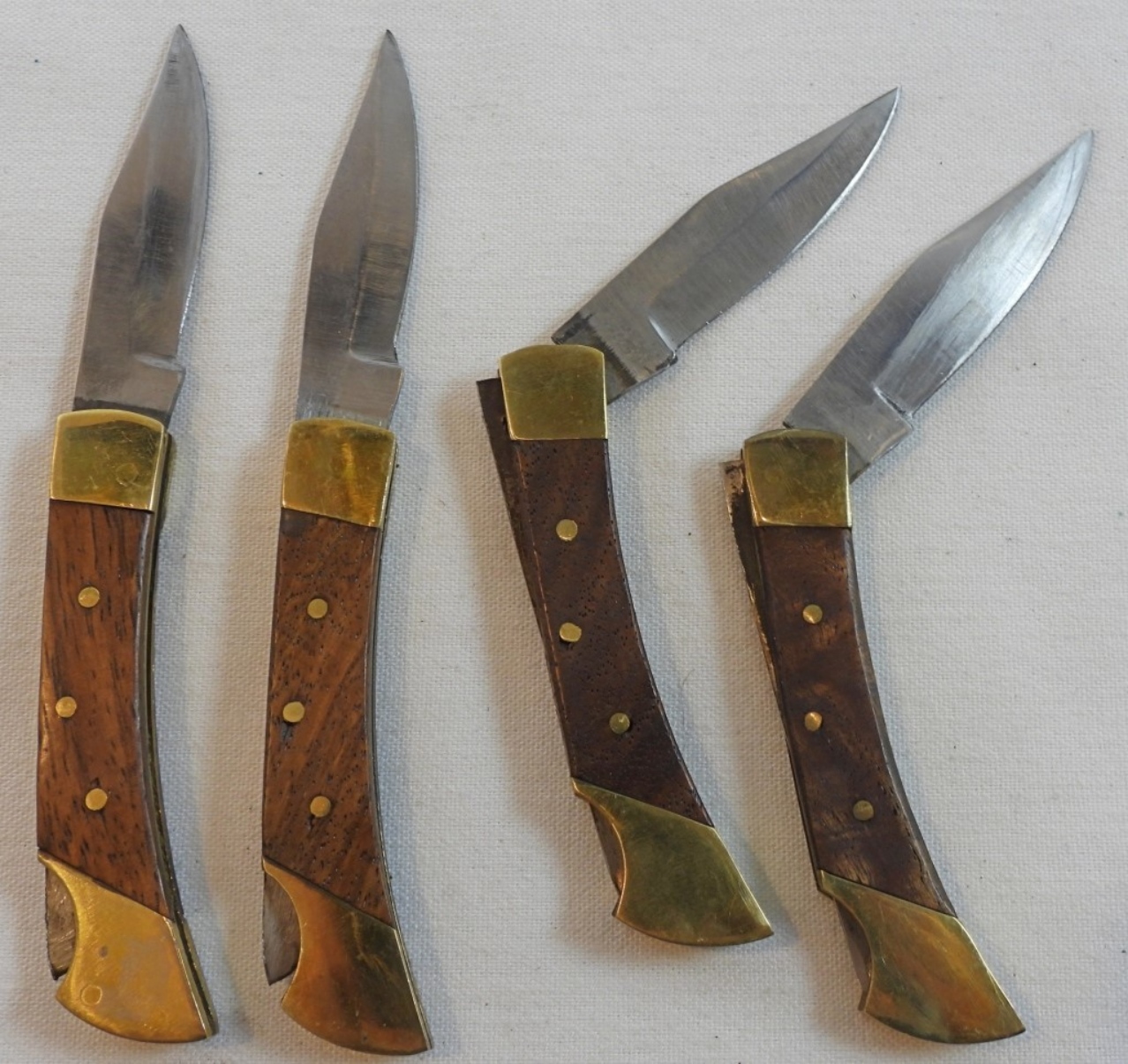 4 unbranded stainless steel Pakistan folding pocket knives, all small and the same size with a total length of just over 5″