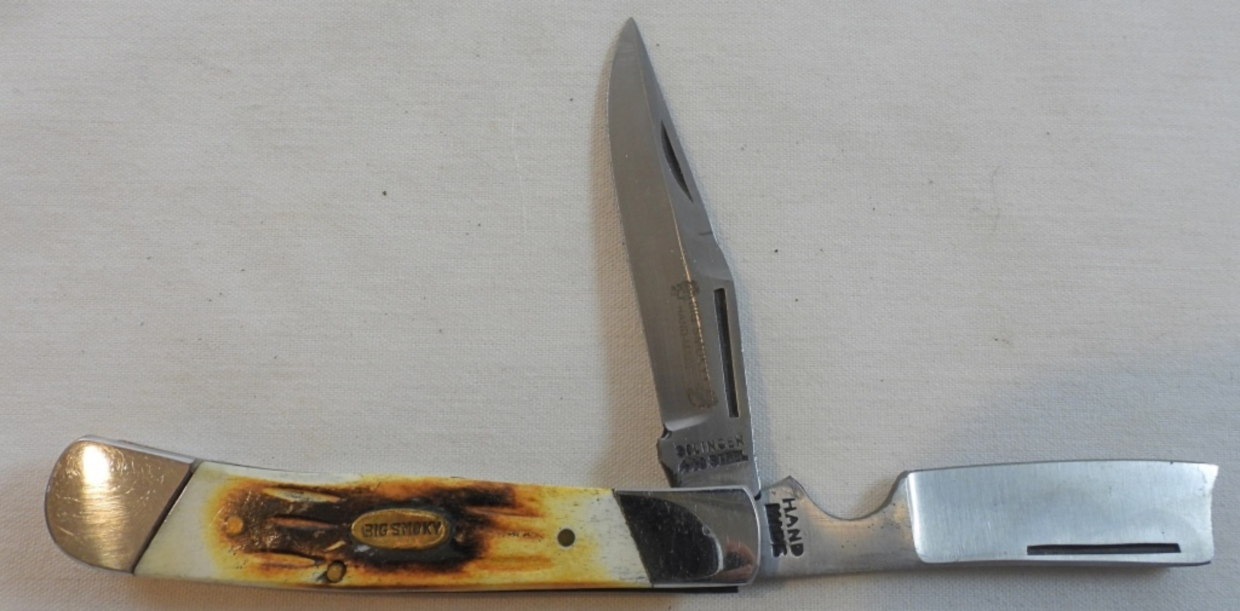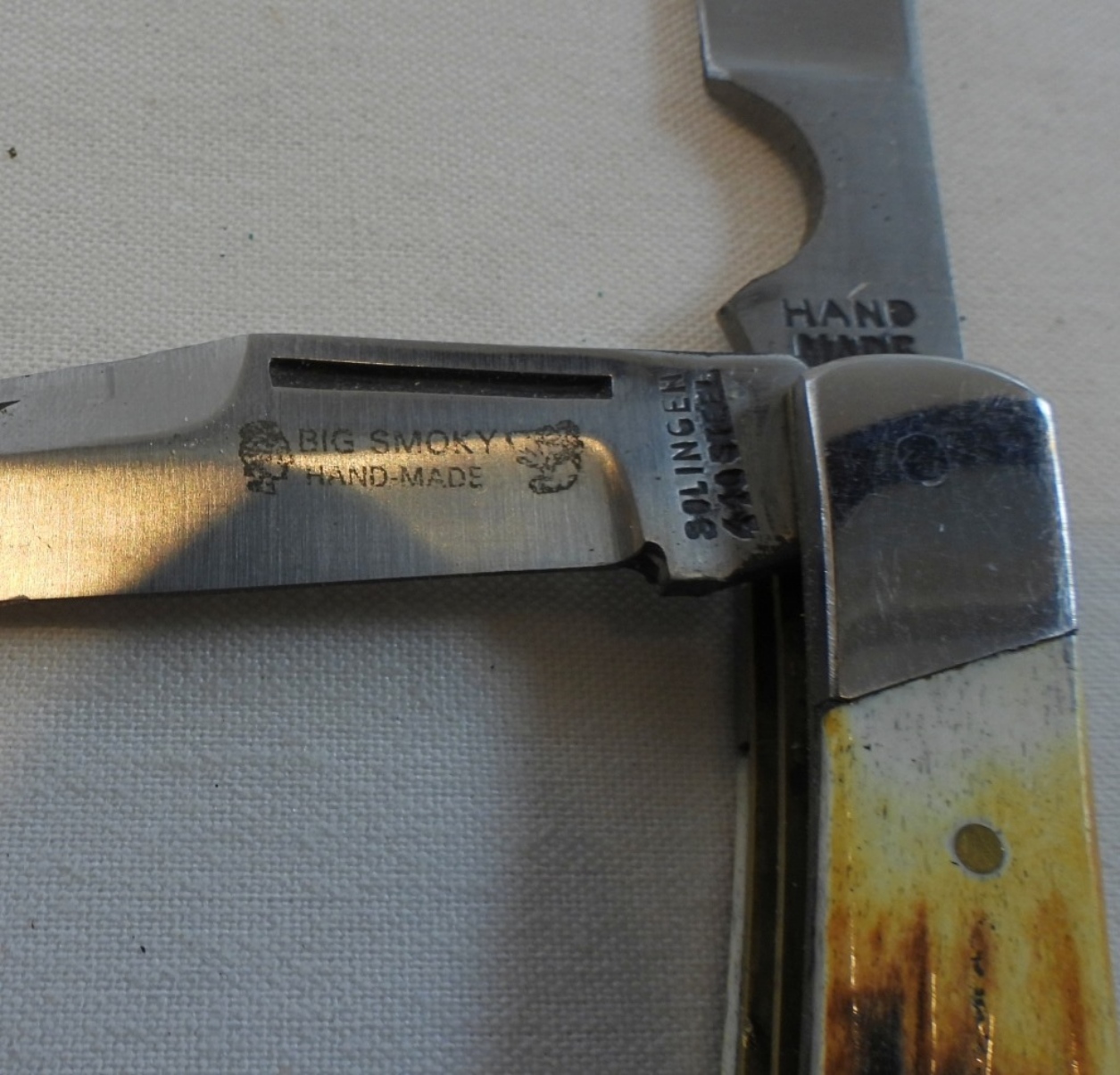Big Smoky, Solingen 440 steel, 2-blade folding pocket knife, 1 of the blades is missing the tip, handle length is 4 1/4″