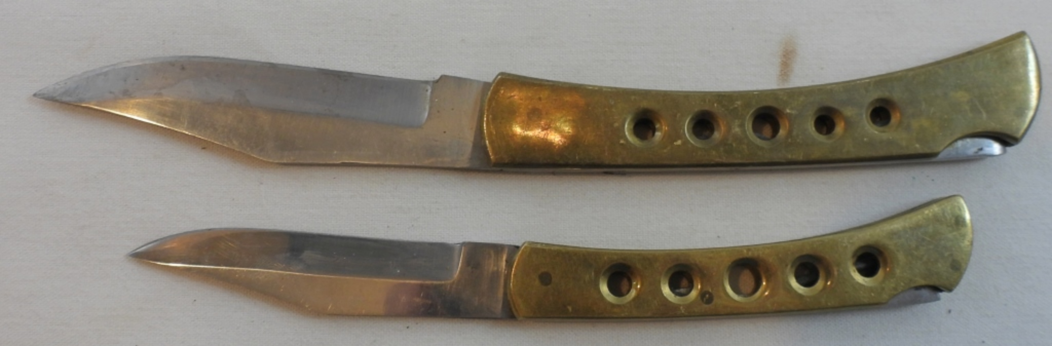 3 1/4″ and 4″ blades, brass tone handles and stainless steel Pakistan blades