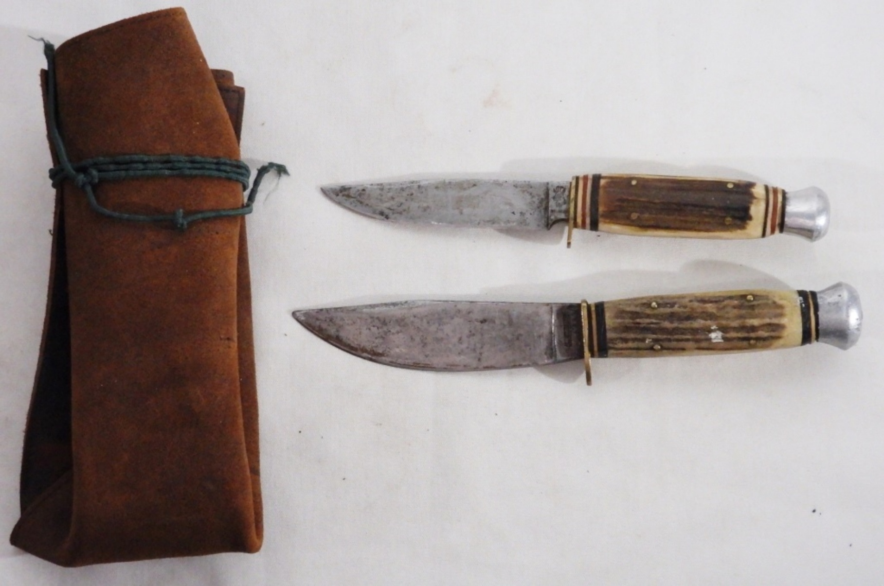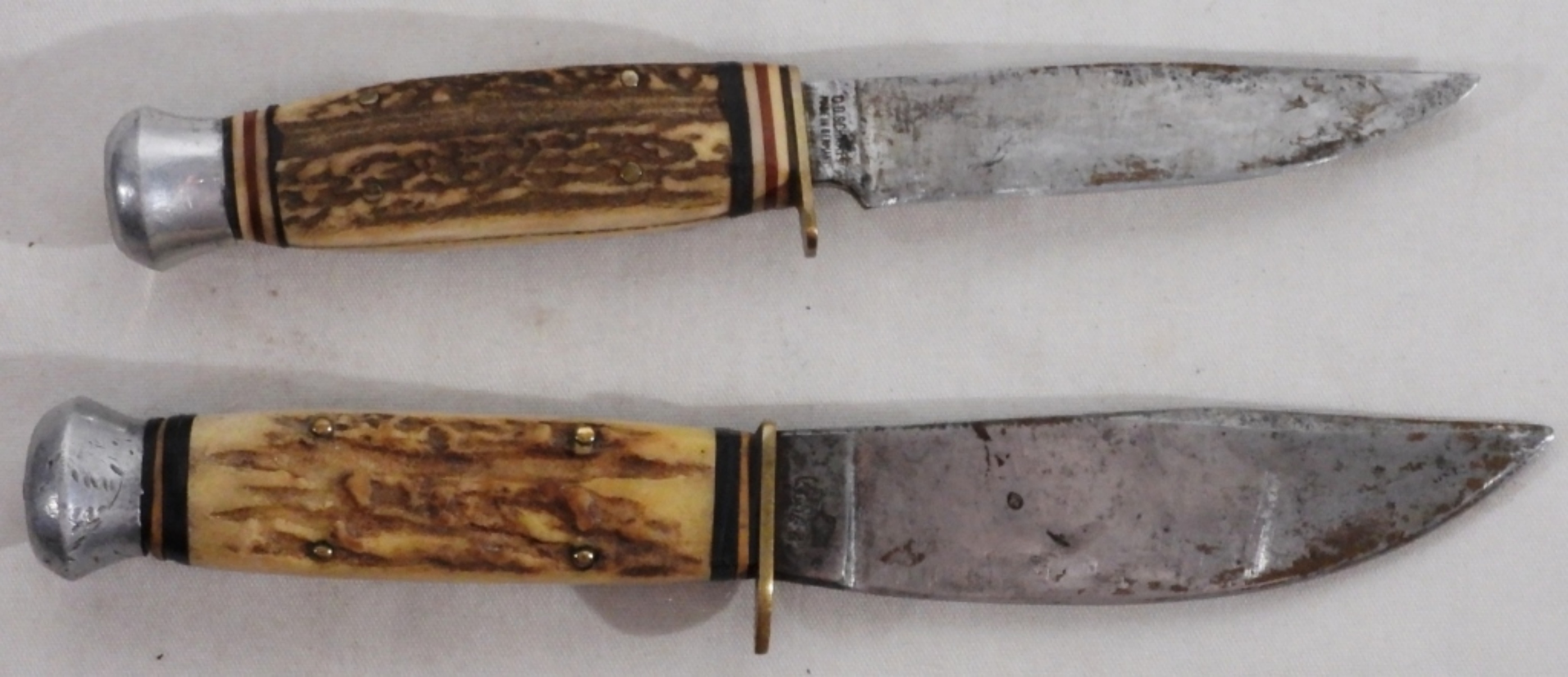 Used. Solingen, Germany G.C. CO Stag Handle Knife With leather holding them
