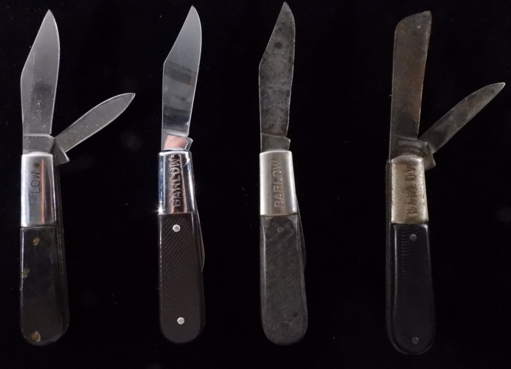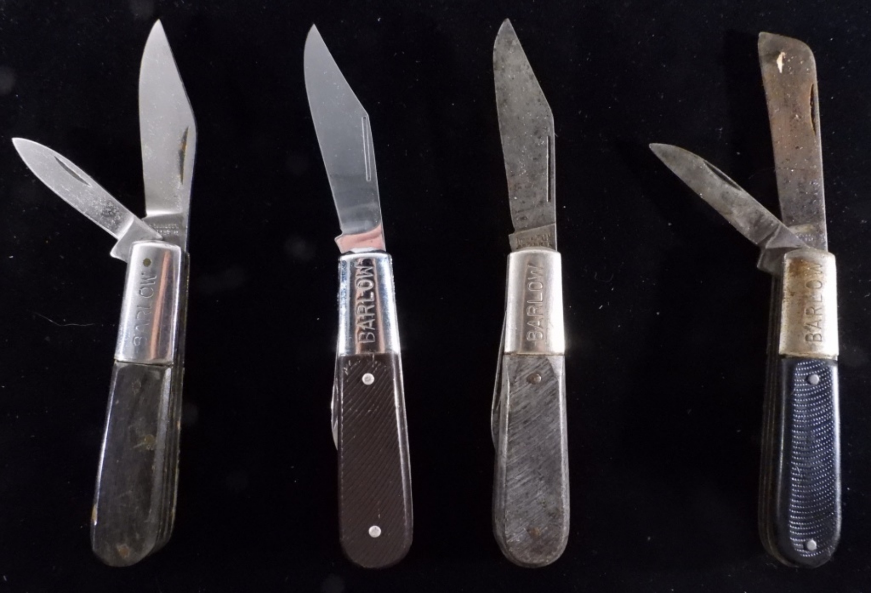 4 Barlow knives, all 2-bladed, in varying conditions, about 3 1/2″ handles