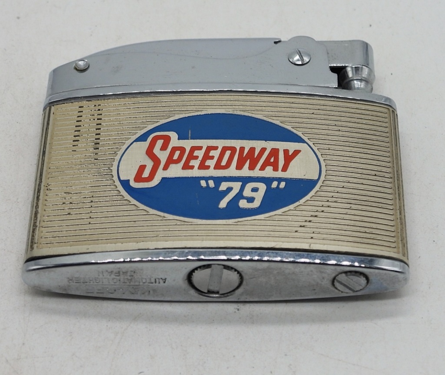 Vintage Speedway “79” flat advertising lighter in original box. Unfired! Kay-cee brand.