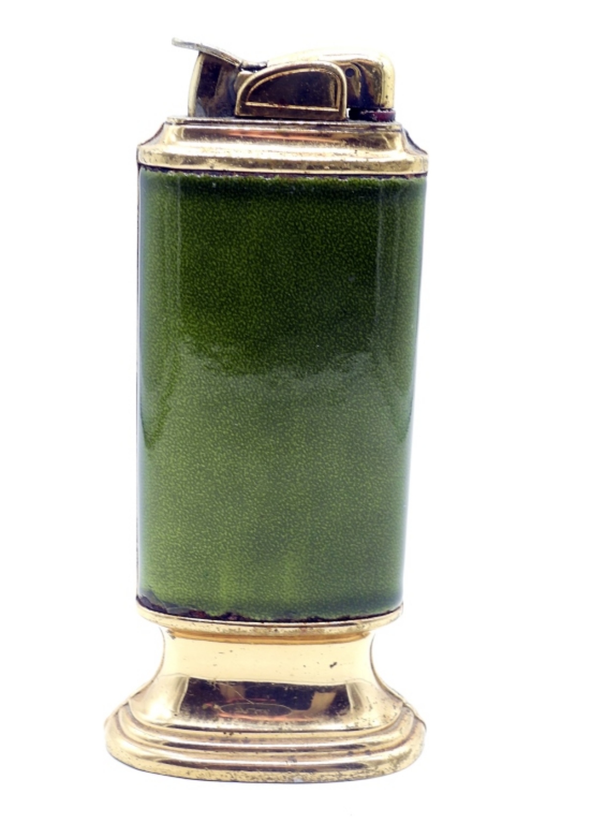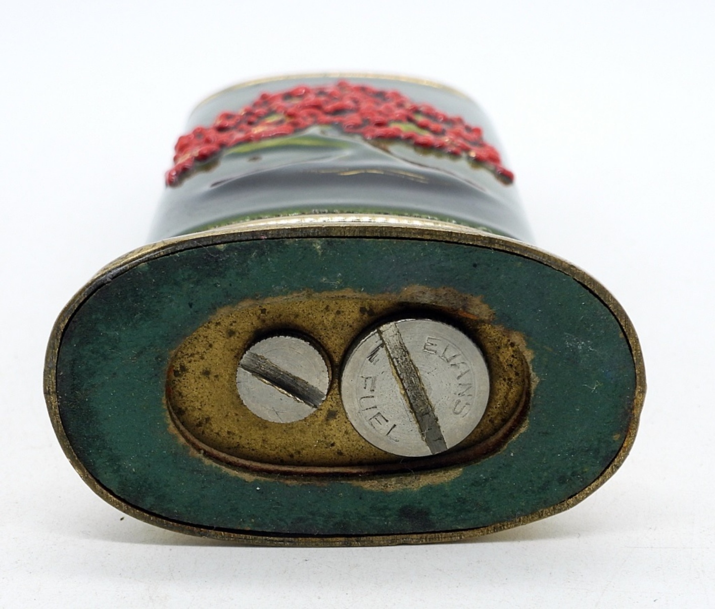 Evans Brand, brass and enamel oriental style tree, table top lighter. 5″ tall.