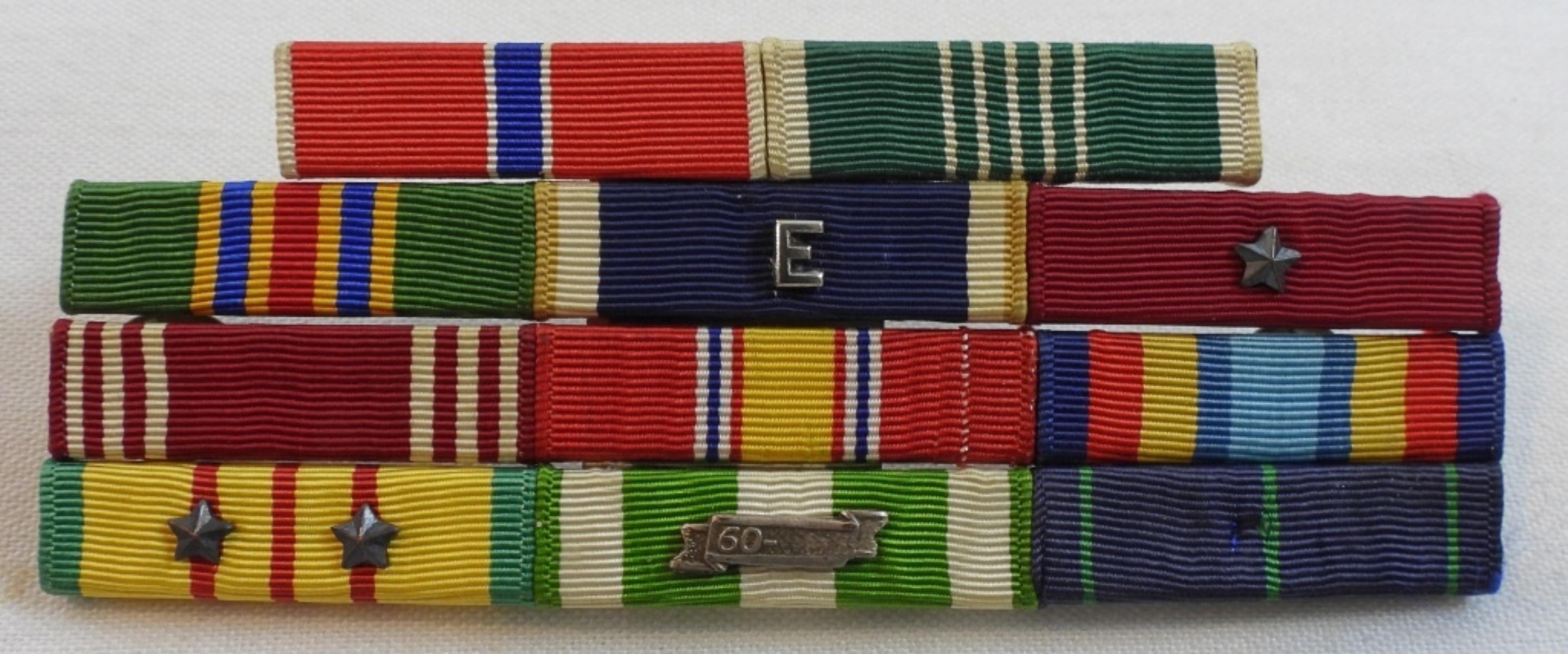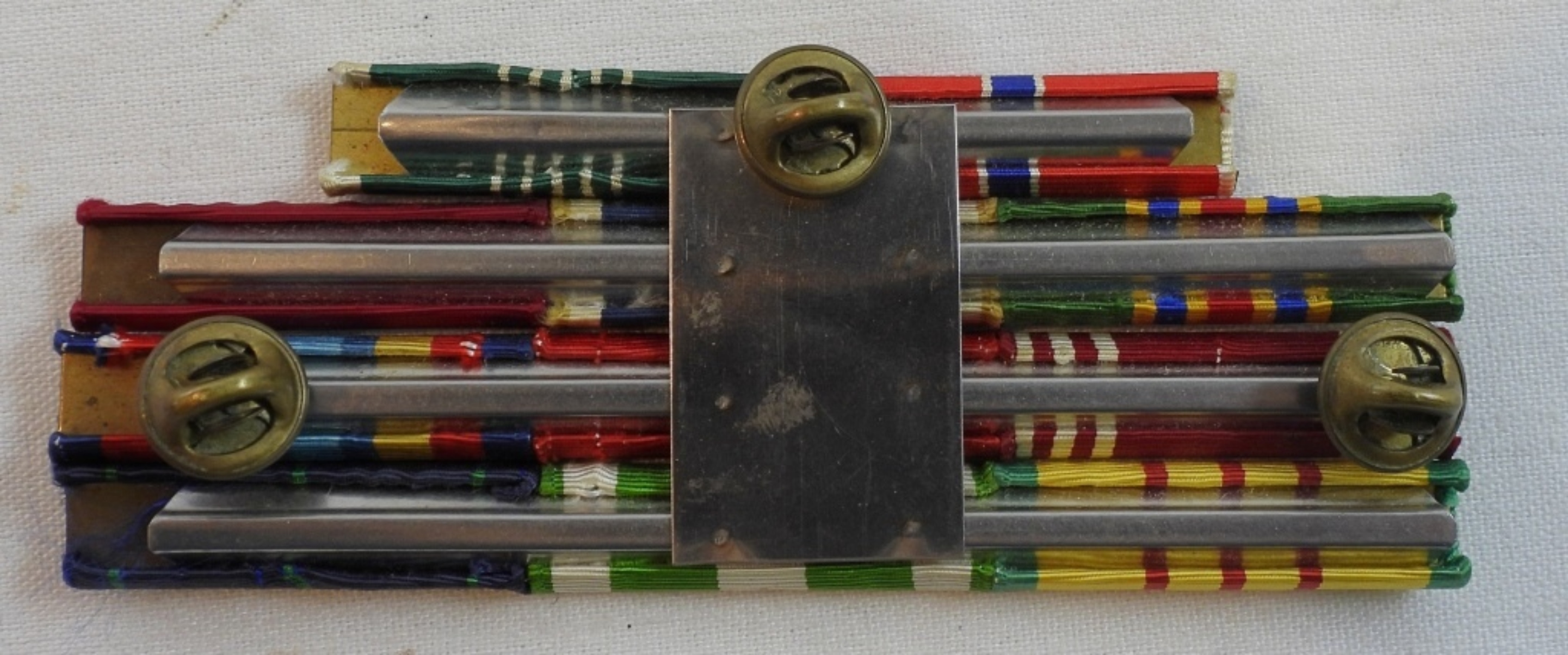 11 ribbons from Naval service during Vietnam mounted on bar, including Vietnam Service ribbon, National Defense and more