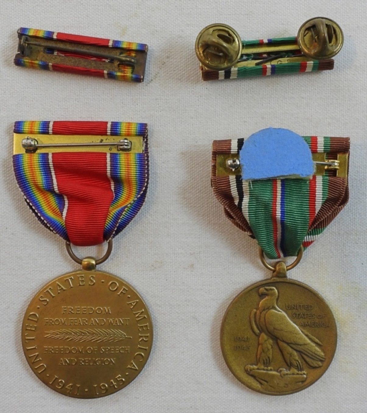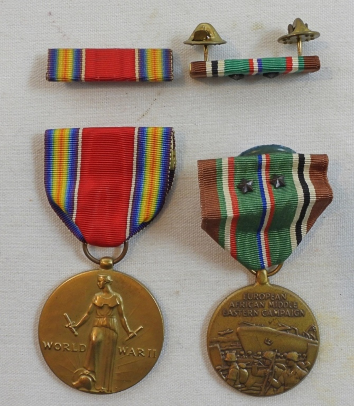 European African Middle Eastern Campaign medal and ribbon with 2 stars, and the Freedom from fear and want medal and ribbon