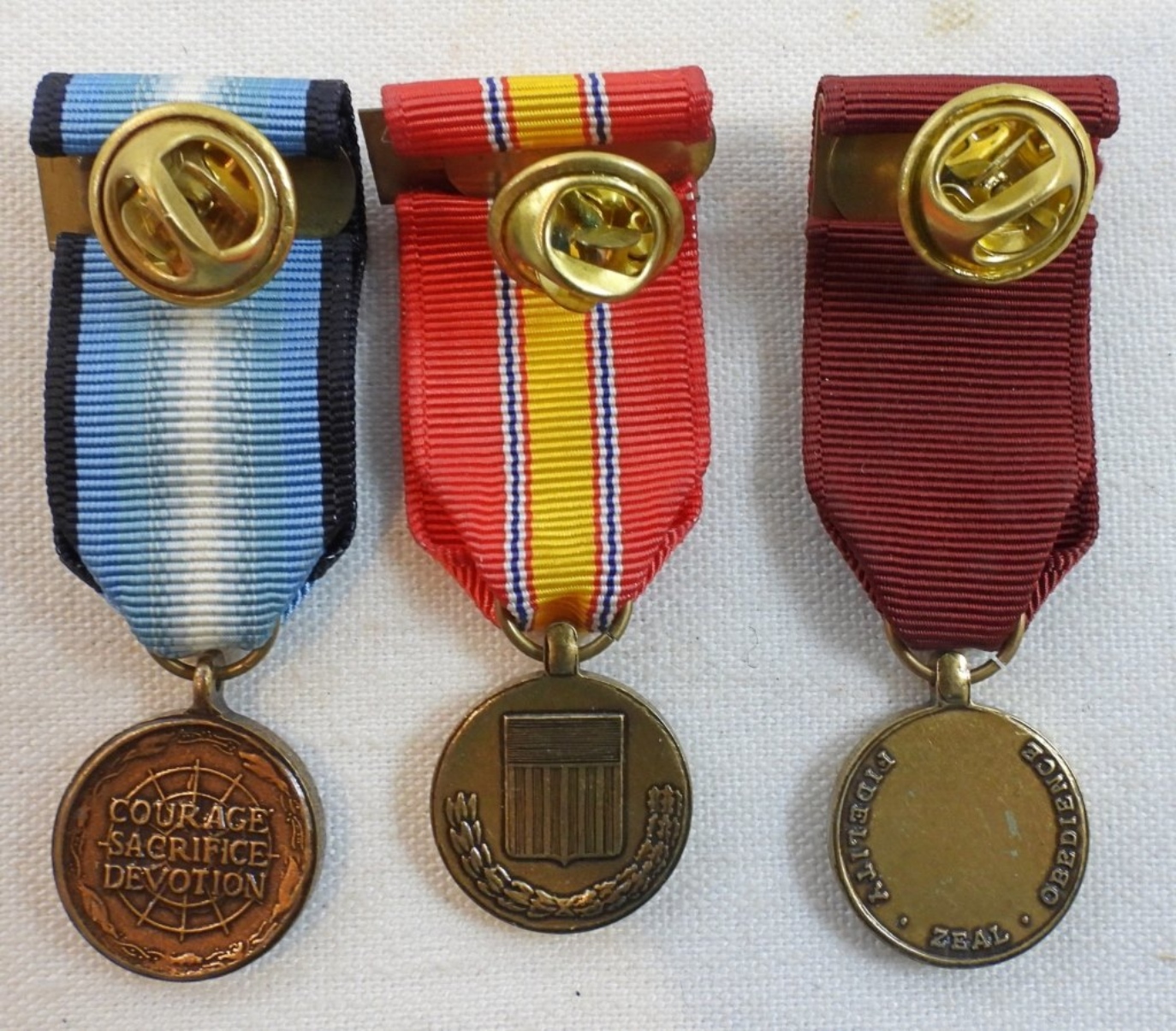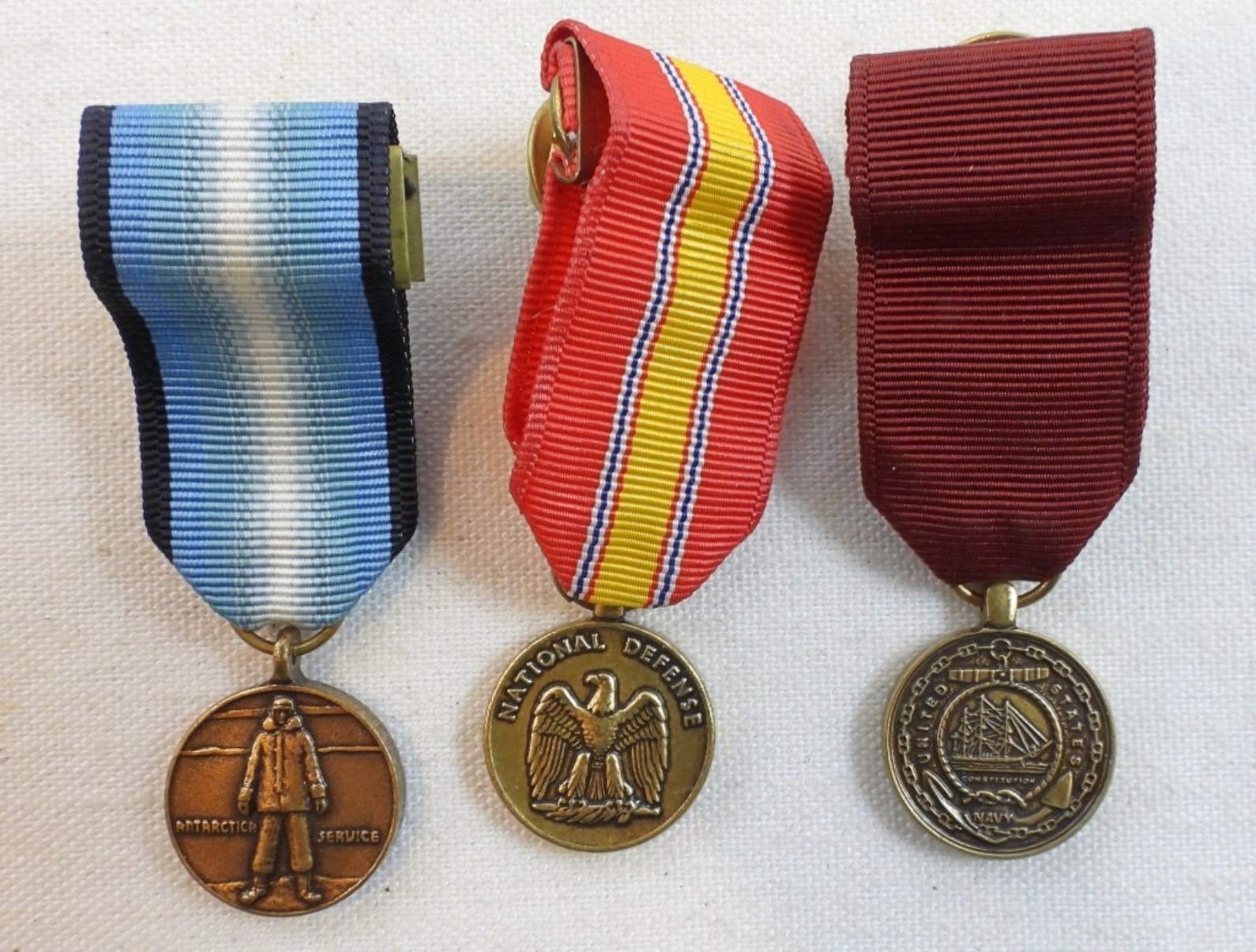 Navy Good Conduct, Arctic Service, and National Defense medals, all miniature