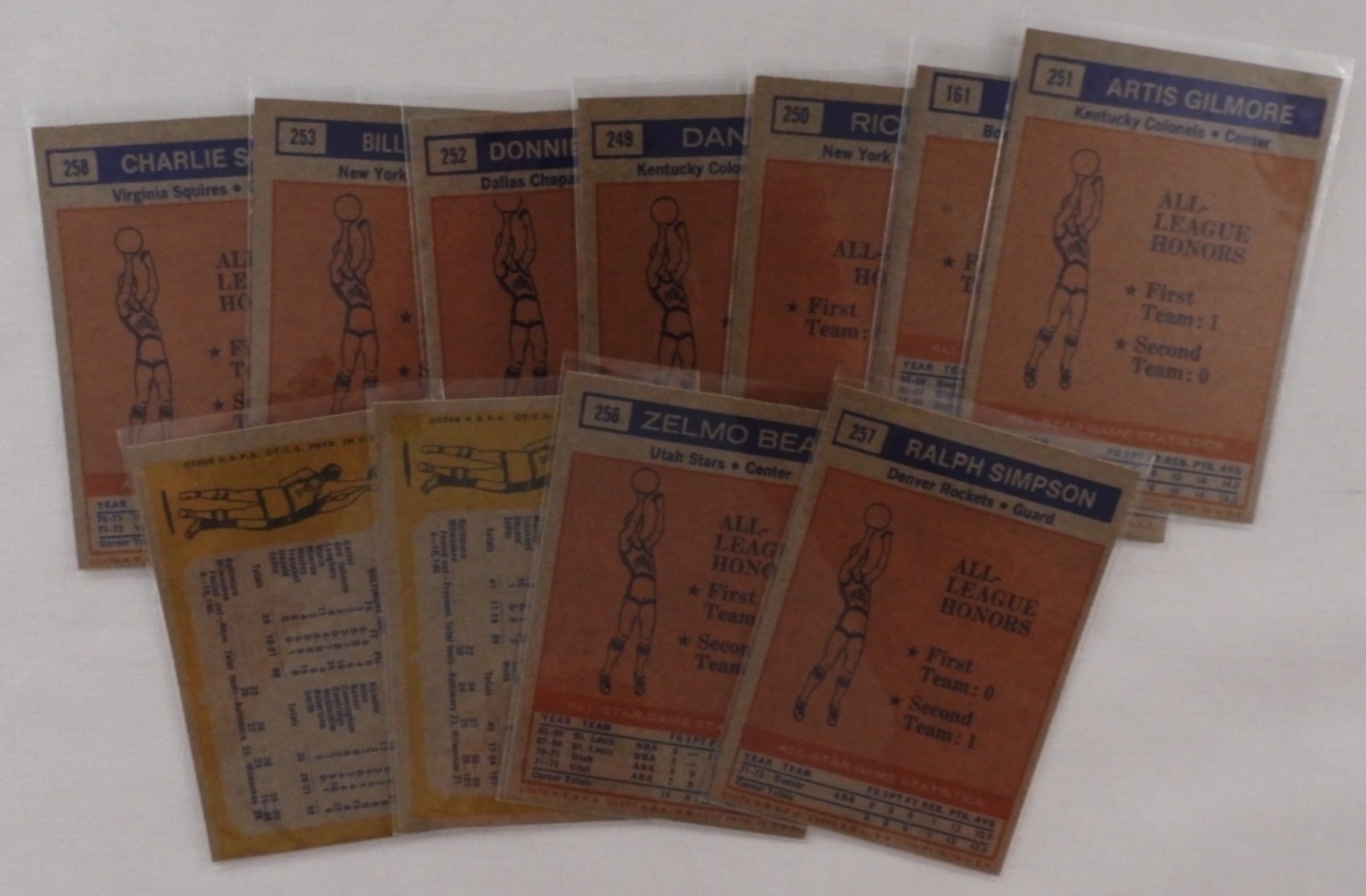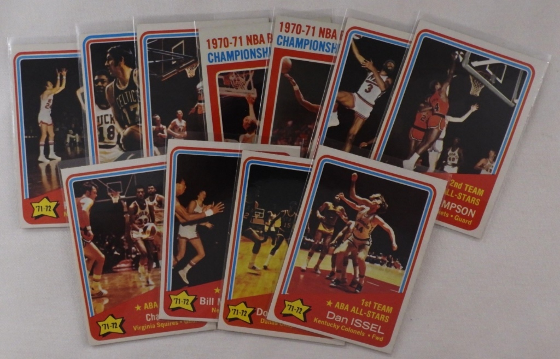 11 cards from TOPPS 1971-72, including ABA All-Stars, Championship Game #1, and #3, and NBA All-Stars #161, various conditions