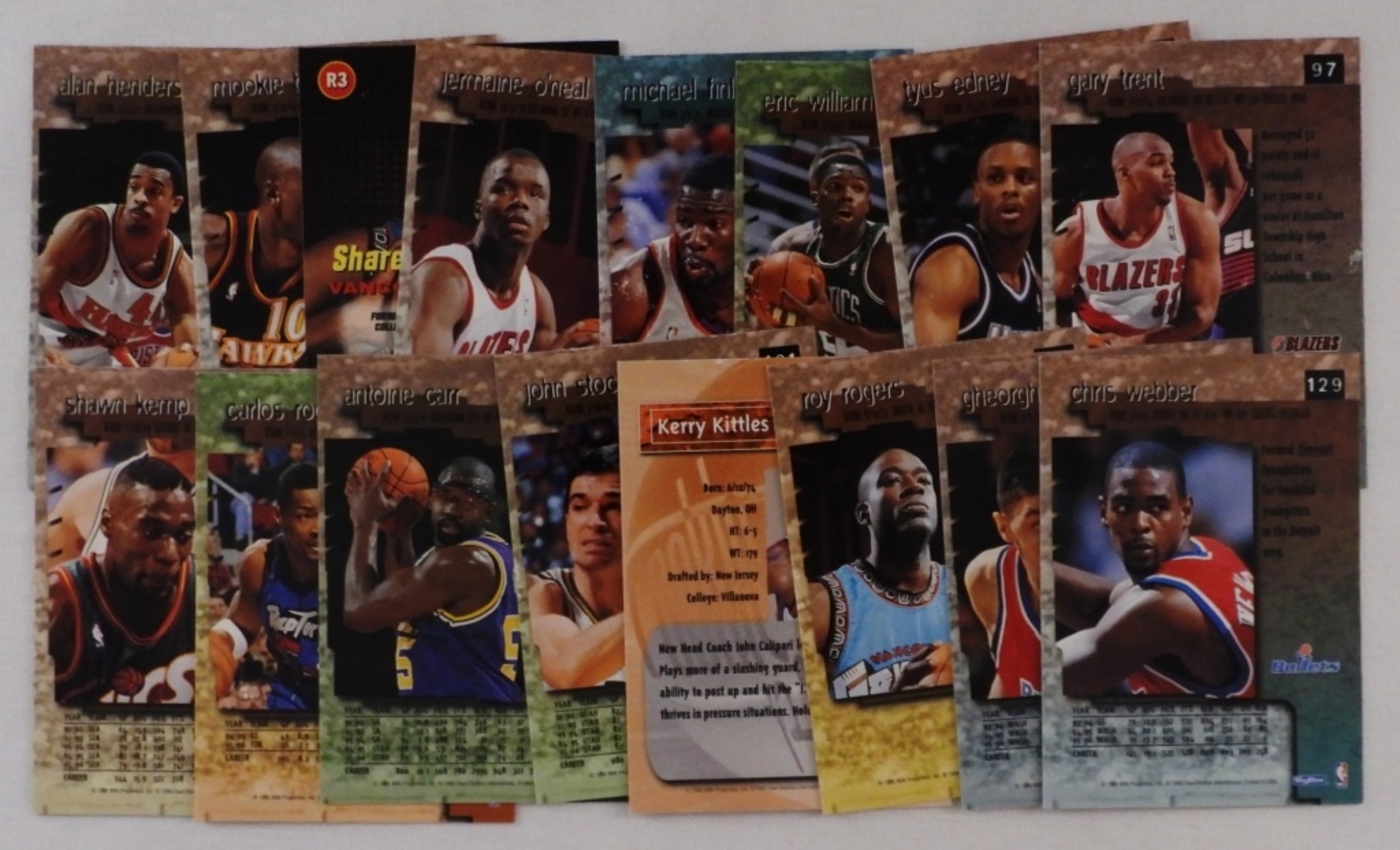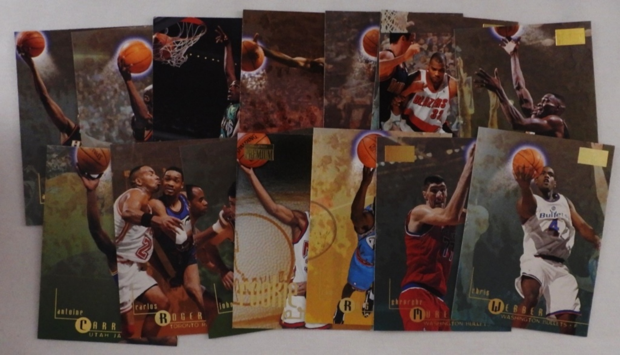 15 Fleer Skybox Premium Basketball cards from 1996, conditions vary