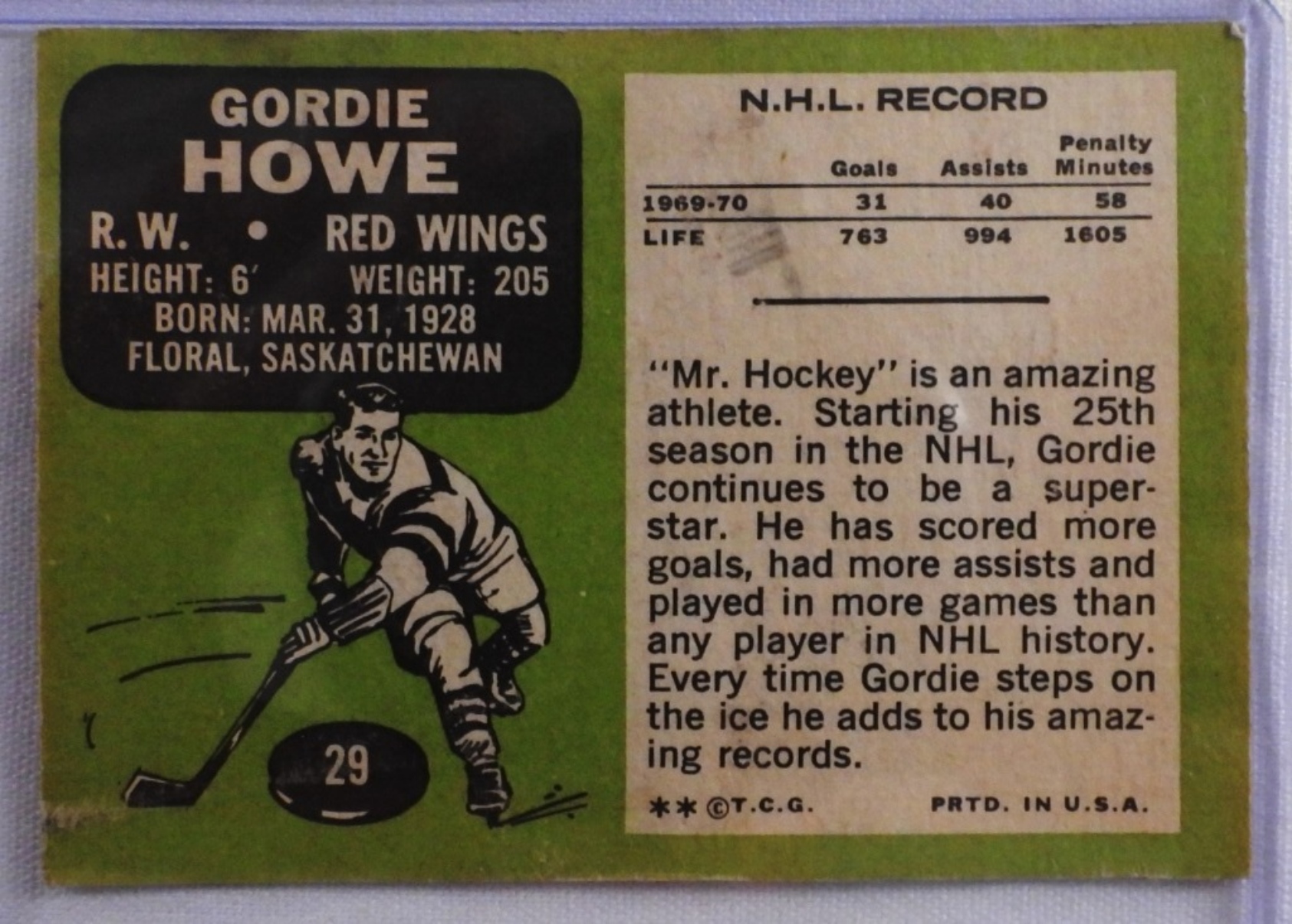 1970 TOPPS Gordie Howe #29 card, good condition