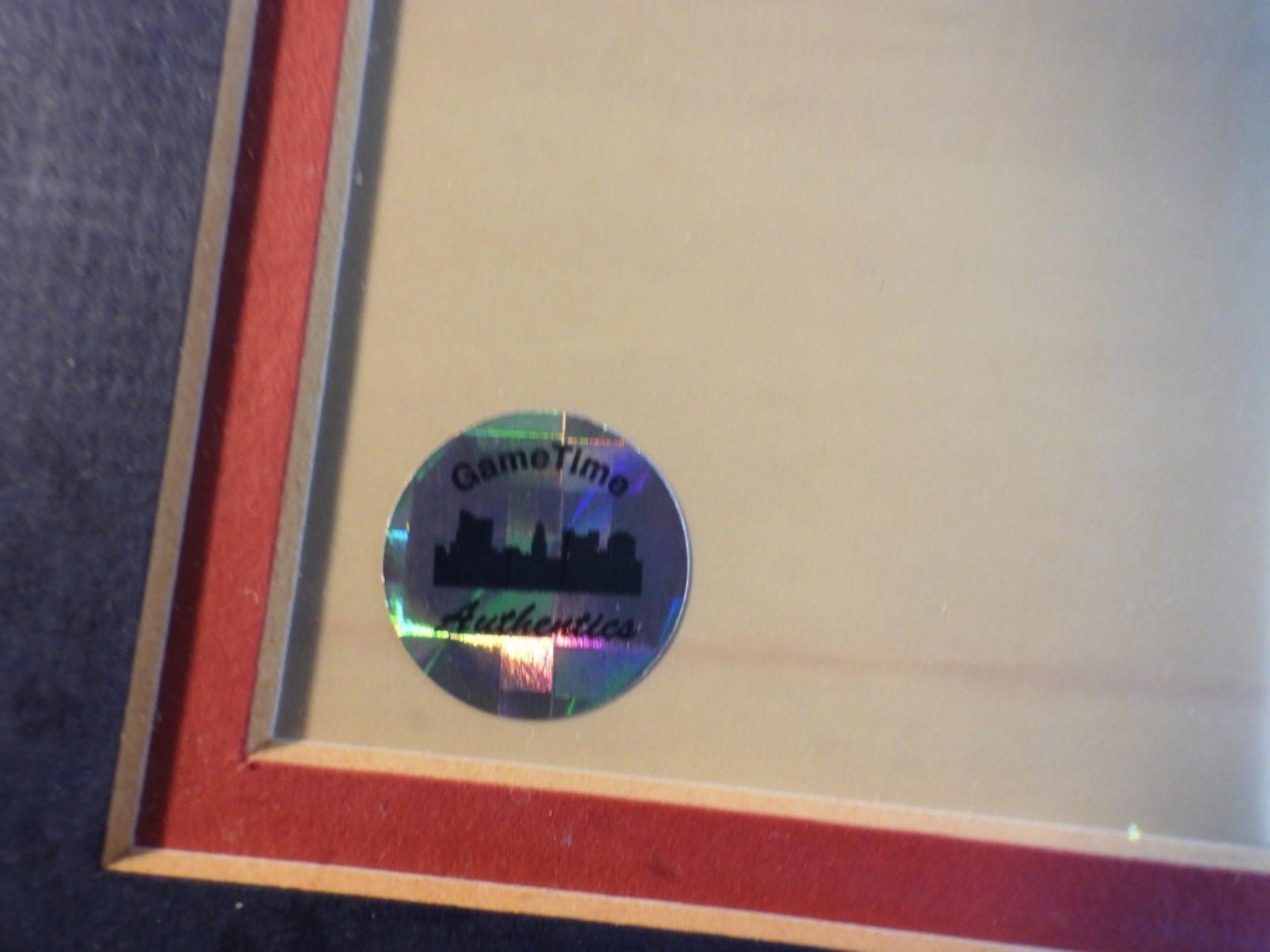 This large photo shows a Columbus Blue Jacket making a score against the Detroit Red Wings. Also has a Holographic sticker from GameTime Authentics